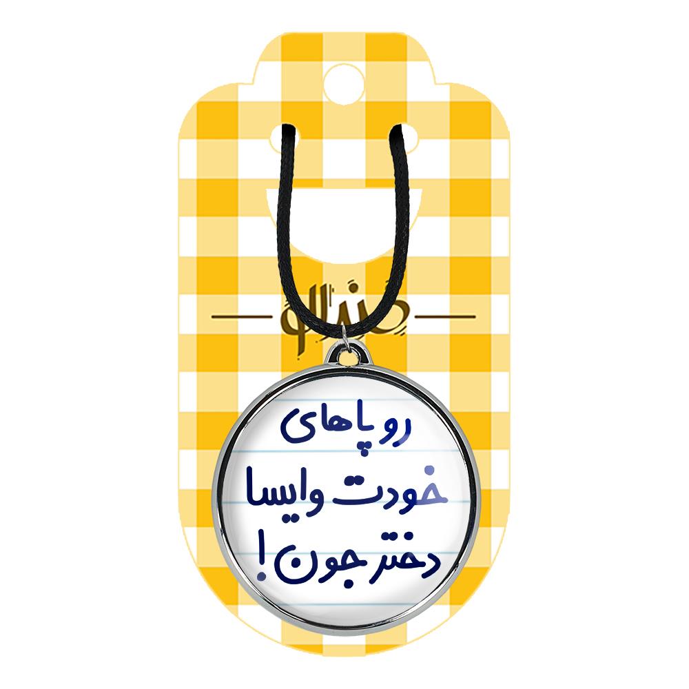گردنبند خندالو طرح رو پاهای خودت وایسا دختر جون! ، محصولی جدید و جذاب است که بصورت دو طرفه بوده، و در هر یک از طرفین گردنبند، طرح متفاوتی از یک موضوع چاپ شده است. دور پلاک گردنبند را، رینگی از جنس کروم نقره ای پوشانده که رنگ آن ثابت بوده و باعث هرچه زیباتر شدن گردنبند می شود. روکش براق روی گردنبند، مقاومت بالایی دارد و در مقابل عرق بدن با دوام بوده و با رطوبت های کم، به طرح آسیبی وارد نمی شود. چاپ گردنبند خندالو طرح رو پاهای خودت وایسا دختر جون! بوسیله بهترین دستگاه های چاپ دیجیتال صورت می گیرد و طرح با شفافیتی مثال زدنی بر روی گردنبند نقش می بندد. جنس بند گردنبند ها نیز تولید شده از چرم صنعتی ست و با ضخامت و مقاومت بالایی که دارد آسیبی نمی بیند. زنجیر بوسیله قفل آبکاری شده به رنگ نقره ای، قابل باز و بسته شدن است که استفاده از آن را راحت تر می کند. همچنین بسته بندی مینیمال و منحصر به فرد خندالو، گردنبند ها را تبدیل به هدیه ای جذاب می کند که با قیمت مناسب و تنوع طرحی بسیار بالایی که از همه موضوعات دارد، میتواند برای هر سلیقه ای خوشحال کننده باشد.
