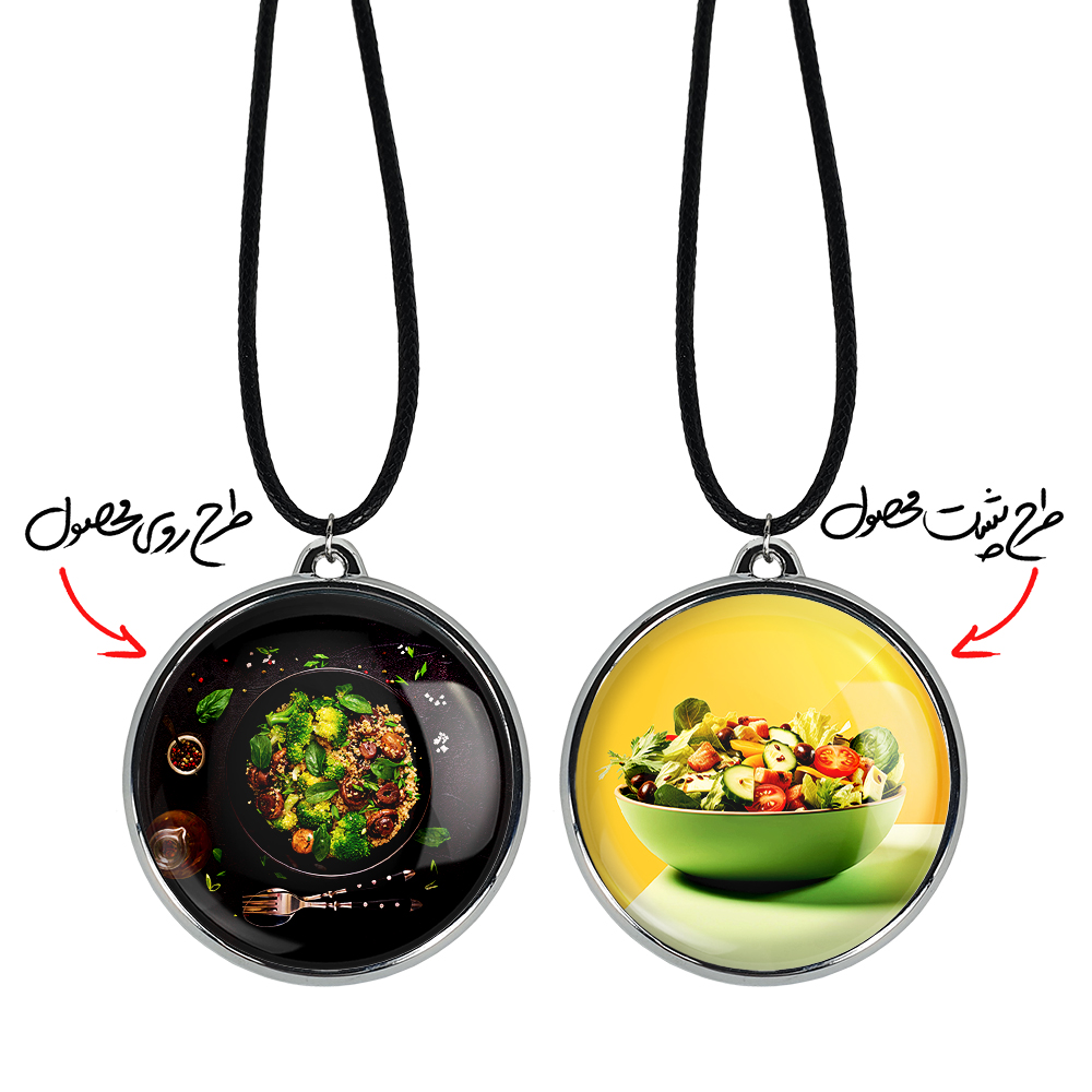 گردنبند خندالو طرح سالاد ، محصولی جدید و جذاب است که بصورت دو طرفه بوده، و در هر یک از طرفین گردنبند، طرح متفاوتی از یک موضوع چاپ شده است. دور پلاک گردنبند را، رینگی از جنس کروم نقره ای پوشانده که رنگ آن ثابت بوده و باعث هرچه زیباتر شدن گردنبند می شود. روکش براق روی گردنبند، مقاومت بالایی دارد و در مقابل عرق بدن با دوام بوده و با رطوبت های کم، به طرح آسیبی وارد نمی شود. چاپ گردنبند خندالو طرح سالاد بوسیله بهترین دستگاه های چاپ دیجیتال صورت می گیرد و طرح با شفافیتی مثال زدنی بر روی گردنبند نقش می بندد.