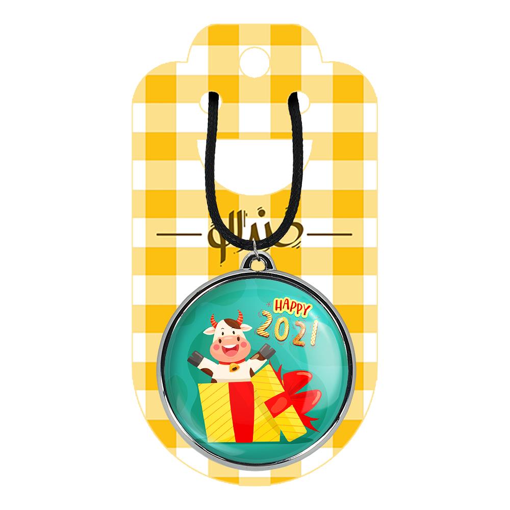 گردنبند خندالو طرح سال گاو ، محصولی جدید و جذاب است که بصورت دو طرفه بوده، و در هر یک از طرفین گردنبند، طرح متفاوتی از یک موضوع چاپ شده است. دور پلاک گردنبند را، رینگی از جنس کروم نقره ای پوشانده که رنگ آن ثابت بوده و باعث هرچه زیباتر شدن گردنبند می شود. روکش براق روی گردنبند، مقاومت بالایی دارد و در مقابل عرق بدن با دوام بوده و با رطوبت های کم، به طرح آسیبی وارد نمی شود. چاپ گردنبند خندالو طرح سال گاو بوسیله بهترین دستگاه های چاپ دیجیتال صورت می گیرد و طرح با شفافیتی مثال زدنی بر روی گردنبند نقش می بندد. جنس بند گردنبند ها نیز تولید شده از چرم صنعتی ست و با ضخامت و مقاومت بالایی که دارد آسیبی نمی بیند. زنجیر بوسیله قفل آبکاری شده به رنگ نقره ای، قابل باز و بسته شدن است که استفاده از آن را راحت تر می کند. همچنین بسته بندی مینیمال و منحصر به فرد خندالو، گردنبند ها را تبدیل به هدیه ای جذاب می کند که با قیمت مناسب و تنوع طرحی بسیار بالایی که از همه موضوعات دارد، میتواند برای هر سلیقه ای خوشحال کننده باشد.