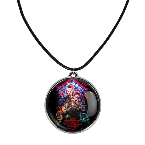 گردنبند خندالو طرح سریال استرنجر تینگز Stranger Things ، محصولی جدید و جذاب است که بصورت دو طرفه بوده، و در هر یک از طرفین گردنبند، طرح متفاوتی از یک موضوع چاپ شده است. دور پلاک گردنبند را، رینگی از جنس کروم نقره ای پوشانده که رنگ آن ثابت بوده و باعث هرچه زیباتر شدن گردنبند می شود. روکش براق روی گردنبند، مقاومت بالایی دارد و در مقابل عرق بدن با دوام بوده و با رطوبت های کم، به طرح آسیبی وارد نمی شود. چاپ گردنبند خندالو طرح سریال استرنجر تینگز Stranger Things بوسیله بهترین دستگاه های چاپ دیجیتال صورت می گیرد و طرح با شفافیتی مثال زدنی بر روی گردنبند نقش می بندد.