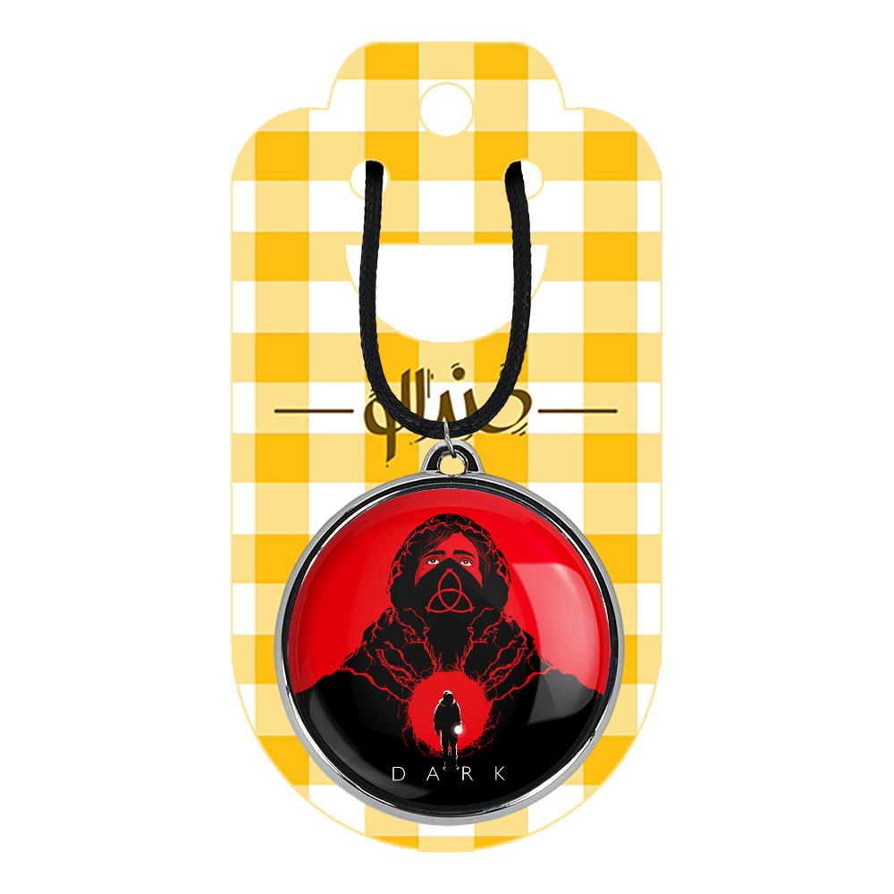 گردنبند خندالو طرح سریال دارک Dark ، محصولی جدید و جذاب است که بصورت دو طرفه بوده، و در هر یک از طرفین گردنبند، طرح متفاوتی از یک موضوع چاپ شده است. دور پلاک گردنبند را، رینگی از جنس کروم نقره ای پوشانده که رنگ آن ثابت بوده و باعث هرچه زیباتر شدن گردنبند می شود. روکش براق روی گردنبند، مقاومت بالایی دارد و در مقابل عرق بدن با دوام بوده و با رطوبت های کم، به طرح آسیبی وارد نمی شود. چاپ گردنبند خندالو طرح سریال دارک Dark بوسیله بهترین دستگاه های چاپ دیجیتال صورت می گیرد و طرح با شفافیتی مثال زدنی بر روی گردنبند نقش می بندد. جنس بند گردنبند ها نیز تولید شده از چرم صنعتی ست و با ضخامت و مقاومت بالایی که دارد آسیبی نمی بیند. زنجیر بوسیله قفل آبکاری شده به رنگ نقره ای، قابل باز و بسته شدن است که استفاده از آن را راحت تر می کند. همچنین بسته بندی مینیمال و منحصر به فرد خندالو، گردنبند ها را تبدیل به هدیه ای جذاب می کند که با قیمت مناسب و تنوع طرحی بسیار بالایی که از همه موضوعات دارد، میتواند برای هر سلیقه ای خوشحال کننده باشد.
