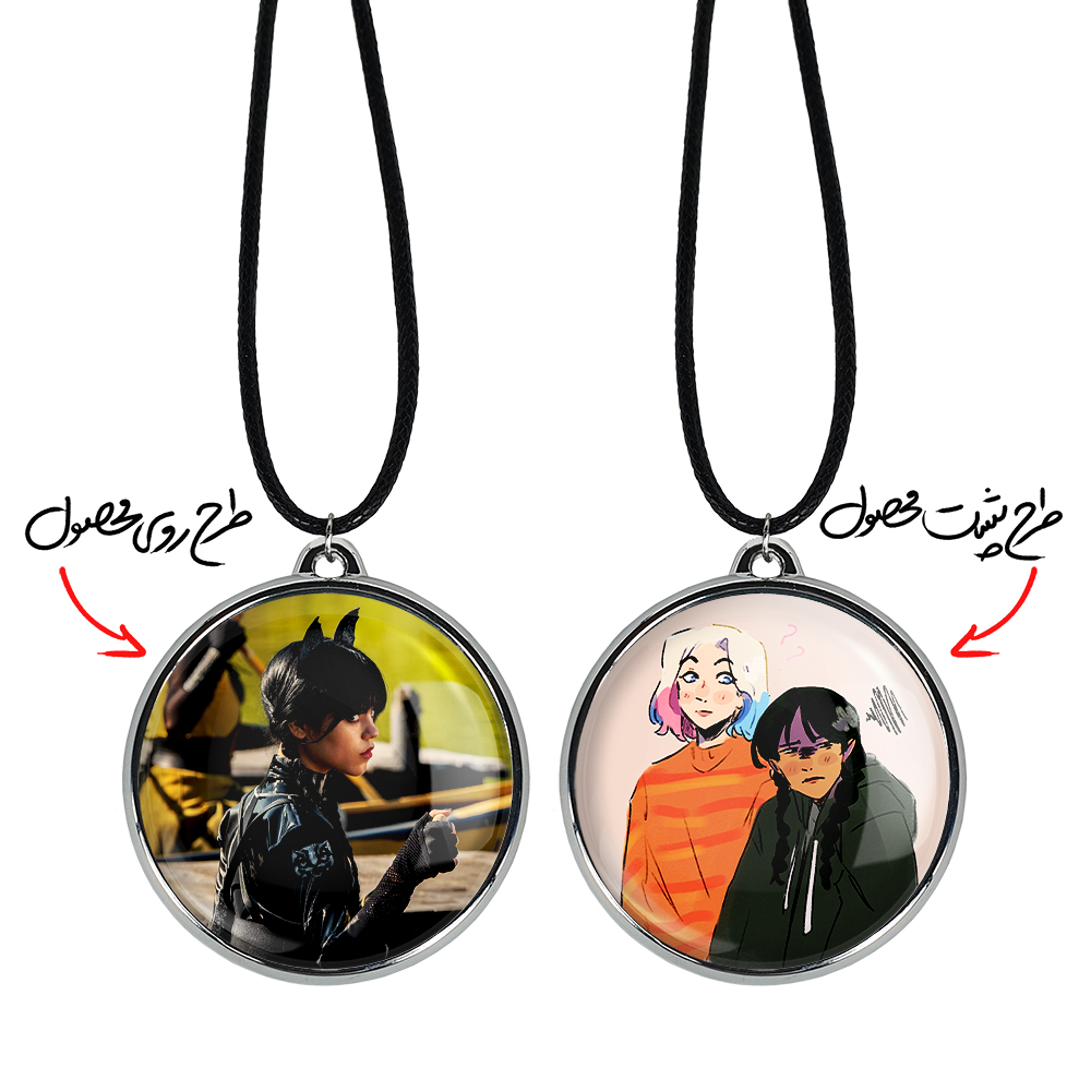 گردنبند خندالو طرح سریال ونزدی Wednesday، محصولی جدید و جذاب است که بصورت دو طرفه بوده، و در هر یک از طرفین گردنبند، طرح متفاوتی از یک موضوع چاپ شده است. دور پلاک گردنبند را، رینگی از جنس کروم نقره ای پوشانده که رنگ آن ثابت بوده و باعث هرچه زیباتر شدن گردنبند می شود. روکش براق روی گردنبند، مقاومت بالایی دارد و در مقابل عرق بدن با دوام بوده و با رطوبت های کم، به طرح آسیبی وارد نمی شود. چاپ گردنبند خندالو طرح سریال ونزدی Wednesday بوسیله بهترین دستگاه های چاپ دیجیتال صورت می گیرد و طرح با شفافیتی مثال زدنی بر روی گردنبند نقش می بندد.