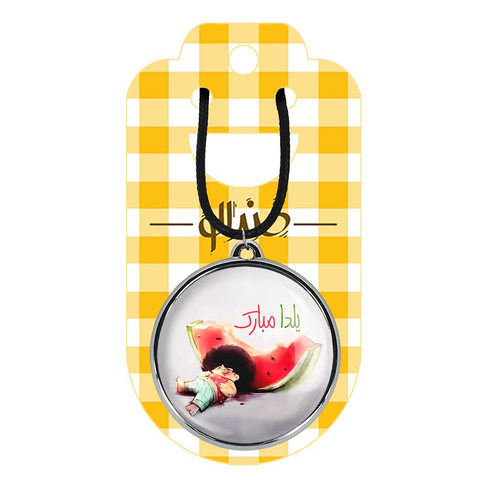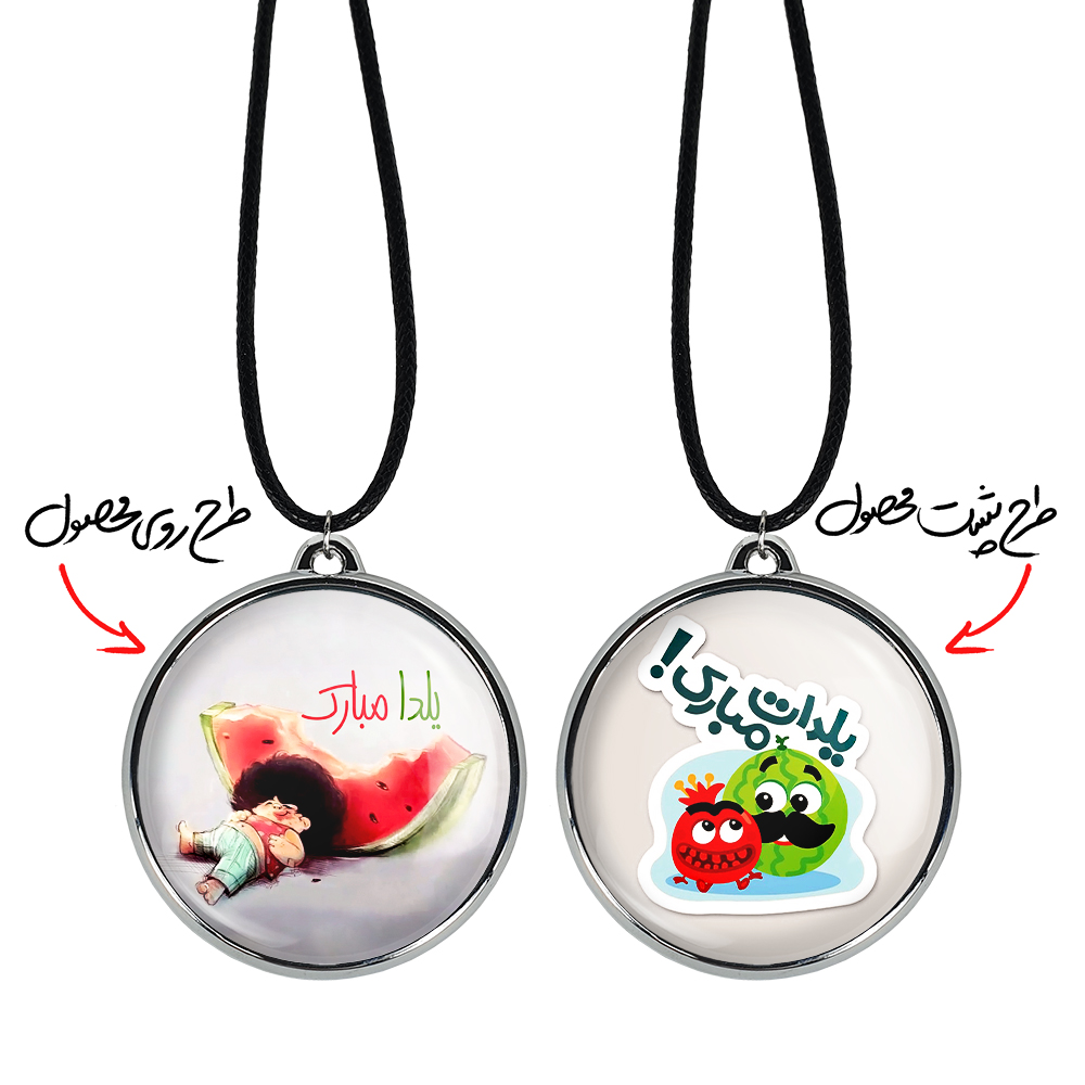 گردنبند خندالو طرح شب یلدا ، محصولی جدید و جذاب است که بصورت دو طرفه بوده، و در هر یک از طرفین گردنبند، طرح متفاوتی از یک موضوع چاپ شده است. دور پلاک گردنبند را، رینگی از جنس کروم نقره ای پوشانده که رنگ آن ثابت بوده و باعث هرچه زیباتر شدن گردنبند می شود. روکش براق روی گردنبند، مقاومت بالایی دارد و در مقابل عرق بدن با دوام بوده و با رطوبت های کم، به طرح آسیبی وارد نمی شود. چاپ گردنبند خندالو طرح شب یلدا بوسیله بهترین دستگاه های چاپ دیجیتال صورت می گیرد و طرح با شفافیتی مثال زدنی بر روی گردنبند نقش می بندد.