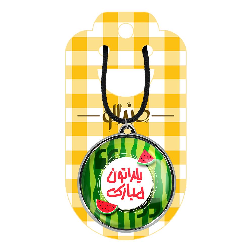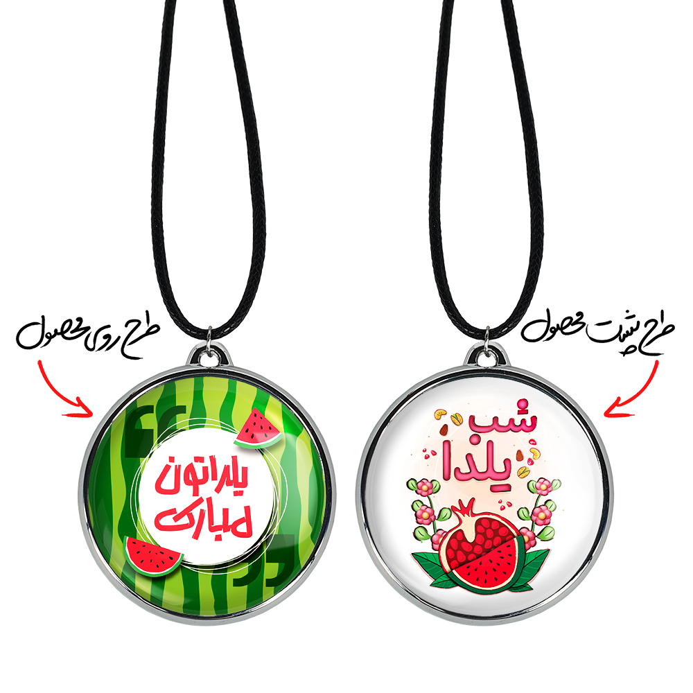 گردنبند خندالو طرح شب یلدا، محصولی جدید و جذاب است که بصورت دو طرفه بوده، و در هر یک از طرفین گردنبند، طرح متفاوتی از یک موضوع چاپ شده است. دور پلاک گردنبند را، رینگی از جنس کروم نقره ای پوشانده که رنگ آن ثابت بوده و باعث هرچه زیباتر شدن گردنبند می شود. روکش براق روی گردنبند، مقاومت بالایی دارد و در مقابل عرق بدن با دوام بوده و با رطوبت های کم، به طرح آسیبی وارد نمی شود. چاپ گردنبند خندالو طرح شب یلدا بوسیله بهترین دستگاه های چاپ دیجیتال صورت می گیرد و طرح با شفافیتی مثال زدنی بر روی گردنبند نقش می بندد.