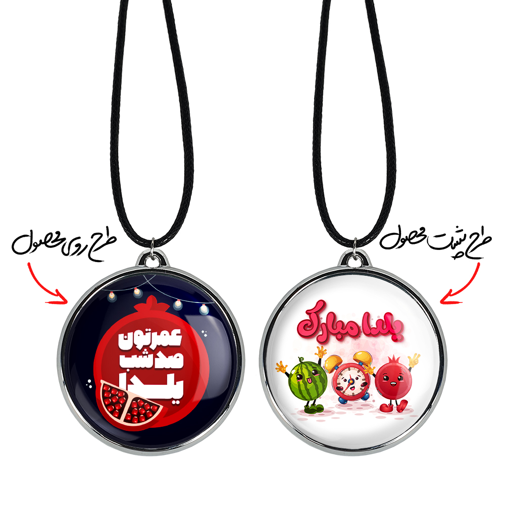 گردنبند خندالو طرح شب یلدا، محصولی جدید و جذاب است که بصورت دو طرفه بوده، و در هر یک از طرفین گردنبند، طرح متفاوتی از یک موضوع چاپ شده است. دور پلاک گردنبند را، رینگی از جنس کروم نقره ای پوشانده که رنگ آن ثابت بوده و باعث هرچه زیباتر شدن گردنبند می شود. روکش براق روی گردنبند، مقاومت بالایی دارد و در مقابل عرق بدن با دوام بوده و با رطوبت های کم، به طرح آسیبی وارد نمی شود. چاپ گردنبند خندالو طرح شب یلدا بوسیله بهترین دستگاه های چاپ دیجیتال صورت می گیرد و طرح با شفافیتی مثال زدنی بر روی گردنبند نقش می بندد.