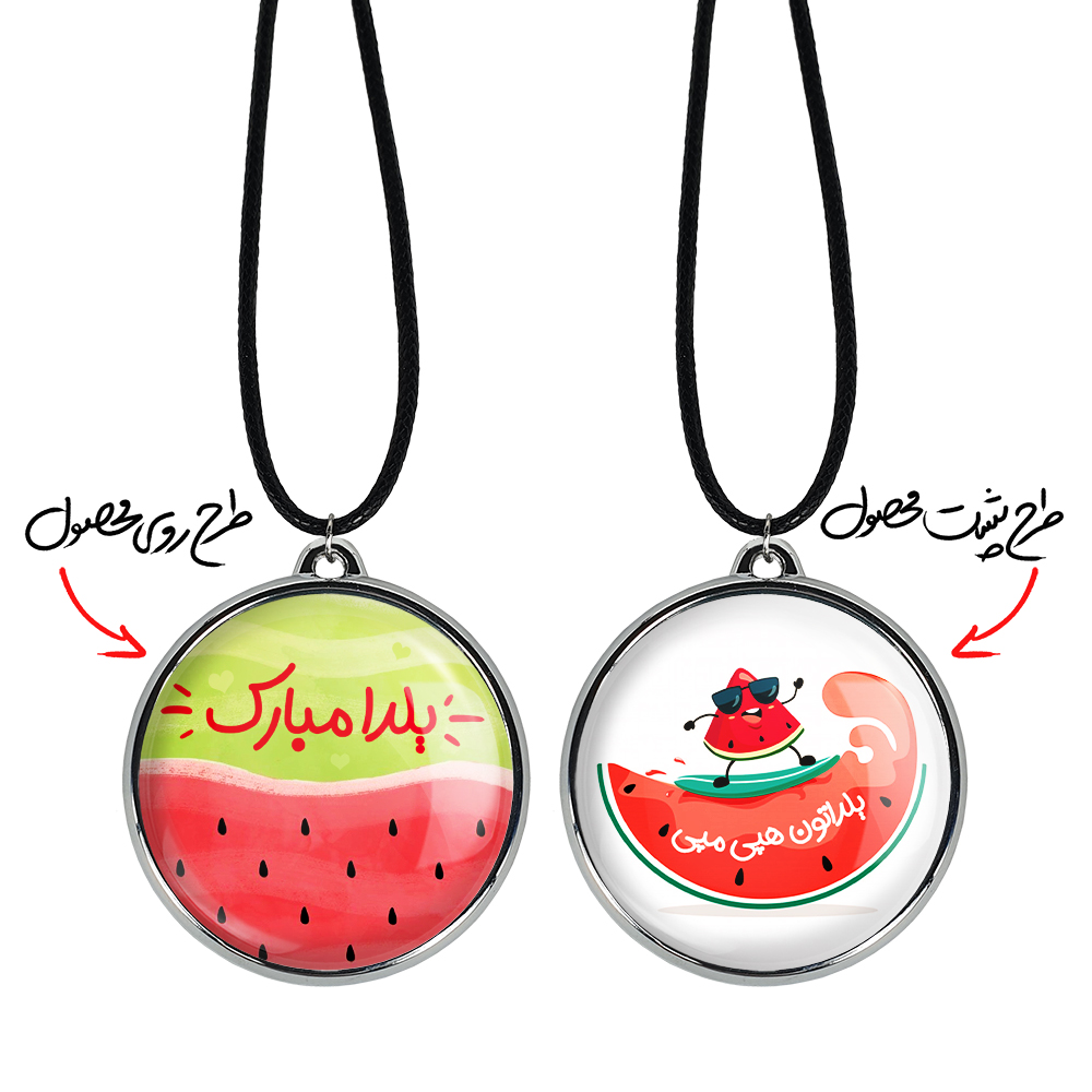 گردنبند خندالو طرح شب یلدا ، محصولی جدید و جذاب است که بصورت دو طرفه بوده، و در هر یک از طرفین گردنبند، طرح متفاوتی از یک موضوع چاپ شده است. دور پلاک گردنبند را، رینگی از جنس کروم نقره ای پوشانده که رنگ آن ثابت بوده و باعث هرچه زیباتر شدن گردنبند می شود. روکش براق روی گردنبند، مقاومت بالایی دارد و در مقابل عرق بدن با دوام بوده و با رطوبت های کم، به طرح آسیبی وارد نمی شود. چاپ گردنبند خندالو طرح شب یلدا بوسیله بهترین دستگاه های چاپ دیجیتال صورت می گیرد و طرح با شفافیتی مثال زدنی بر روی گردنبند نقش می بندد.
