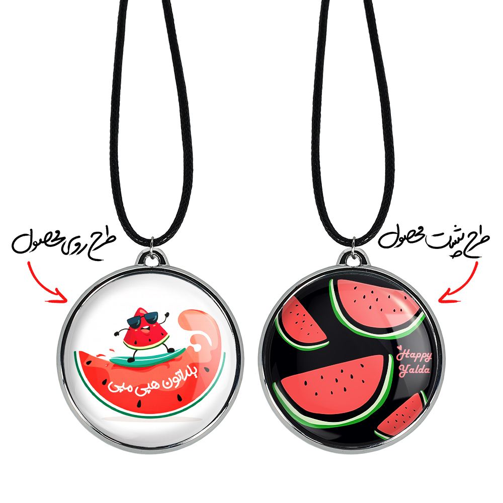 گردنبند خندالو طرح شب یلدا ، محصولی جدید و جذاب است که بصورت دو طرفه بوده، و در هر یک از طرفین گردنبند، طرح متفاوتی از یک موضوع چاپ شده است. دور پلاک گردنبند را، رینگی از جنس کروم نقره ای پوشانده که رنگ آن ثابت بوده و باعث هرچه زیباتر شدن گردنبند می شود. روکش براق روی گردنبند، مقاومت بالایی دارد و در مقابل عرق بدن با دوام بوده و با رطوبت های کم، به طرح آسیبی وارد نمی شود. چاپ گردنبند خندالو طرح شب یلدا بوسیله بهترین دستگاه های چاپ دیجیتال صورت می گیرد و طرح با شفافیتی مثال زدنی بر روی گردنبند نقش می بندد.