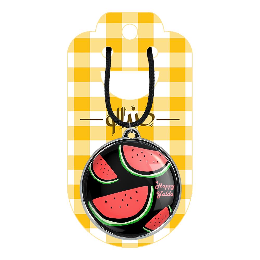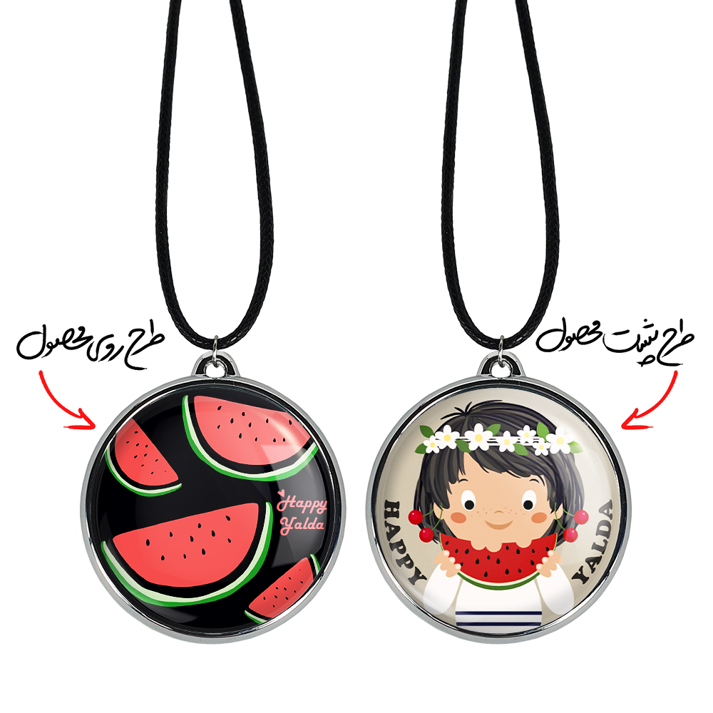 گردنبند خندالو طرح شب یلدا ، محصولی جدید و جذاب است که بصورت دو طرفه بوده، و در هر یک از طرفین گردنبند، طرح متفاوتی از یک موضوع چاپ شده است. دور پلاک گردنبند را، رینگی از جنس کروم نقره ای پوشانده که رنگ آن ثابت بوده و باعث هرچه زیباتر شدن گردنبند می شود. روکش براق روی گردنبند، مقاومت بالایی دارد و در مقابل عرق بدن با دوام بوده و با رطوبت های کم، به طرح آسیبی وارد نمی شود. چاپ گردنبند خندالو طرح شب یلدا بوسیله بهترین دستگاه های چاپ دیجیتال صورت می گیرد و طرح با شفافیتی مثال زدنی بر روی گردنبند نقش می بندد.