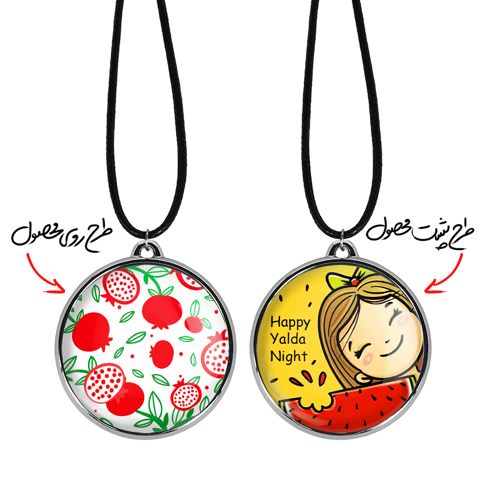 گردنبند خندالو طرح شب یلدا ، محصولی جدید و جذاب است که بصورت دو طرفه بوده، و در هر یک از طرفین گردنبند، طرح متفاوتی از یک موضوع چاپ شده است. دور پلاک گردنبند را، رینگی از جنس کروم نقره ای پوشانده که رنگ آن ثابت بوده و باعث هرچه زیباتر شدن گردنبند می شود. روکش براق روی گردنبند، مقاومت بالایی دارد و در مقابل عرق بدن با دوام بوده و با رطوبت های کم، به طرح آسیبی وارد نمی شود. چاپ گردنبند خندالو طرح شب یلدا بوسیله بهترین دستگاه های چاپ دیجیتال صورت می گیرد و طرح با شفافیتی مثال زدنی بر روی گردنبند نقش می بندد.
