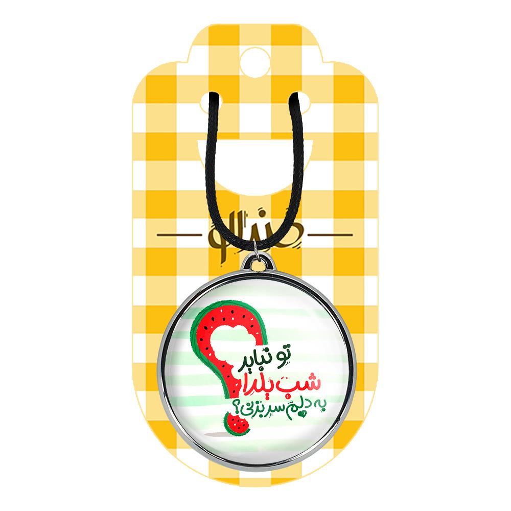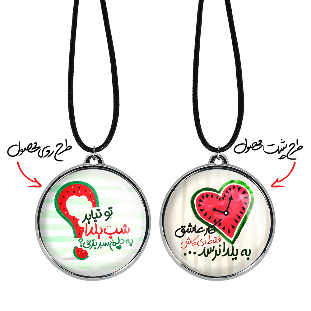 گردنبند خندالو طرح شب یلدا ، محصولی جدید و جذاب است که بصورت دو طرفه بوده، و در هر یک از طرفین گردنبند، طرح متفاوتی از یک موضوع چاپ شده است. دور پلاک گردنبند را، رینگی از جنس کروم نقره ای پوشانده که رنگ آن ثابت بوده و باعث هرچه زیباتر شدن گردنبند می شود. روکش براق روی گردنبند، مقاومت بالایی دارد و در مقابل عرق بدن با دوام بوده و با رطوبت های کم، به طرح آسیبی وارد نمی شود. چاپ گردنبند خندالو طرح شب یلدا بوسیله بهترین دستگاه های چاپ دیجیتال صورت می گیرد و طرح با شفافیتی مثال زدنی بر روی گردنبند نقش می بندد.