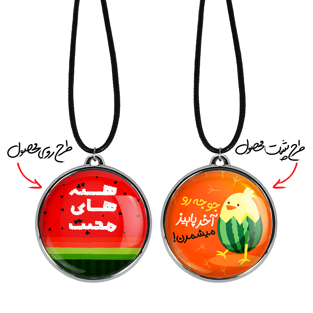 گردنبند خندالو طرح شب یلدا ، محصولی جدید و جذاب است که بصورت دو طرفه بوده، و در هر یک از طرفین گردنبند، طرح متفاوتی از یک موضوع چاپ شده است. دور پلاک گردنبند را، رینگی از جنس کروم نقره ای پوشانده که رنگ آن ثابت بوده و باعث هرچه زیباتر شدن گردنبند می شود. روکش براق روی گردنبند، مقاومت بالایی دارد و در مقابل عرق بدن با دوام بوده و با رطوبت های کم، به طرح آسیبی وارد نمی شود. چاپ گردنبند خندالو طرح شب یلدا بوسیله بهترین دستگاه های چاپ دیجیتال صورت می گیرد و طرح با شفافیتی مثال زدنی بر روی گردنبند نقش می بندد.