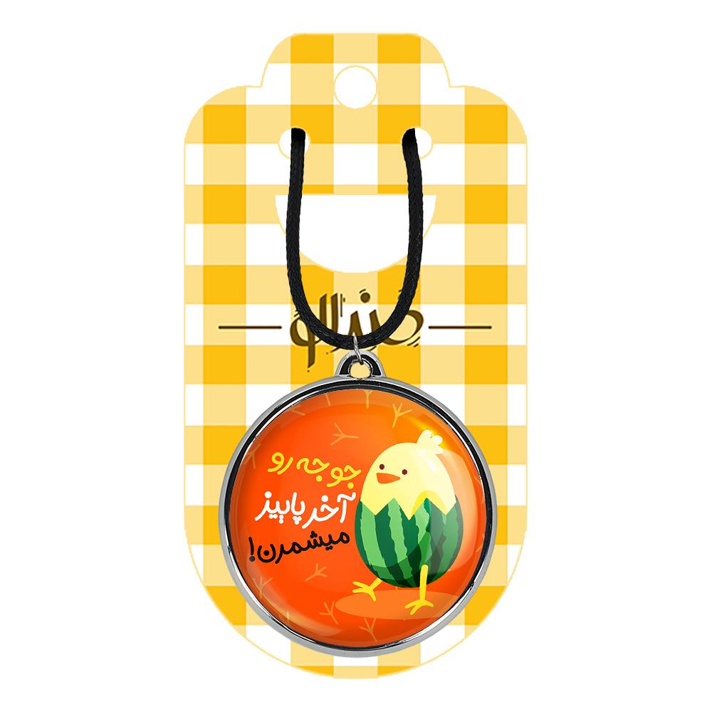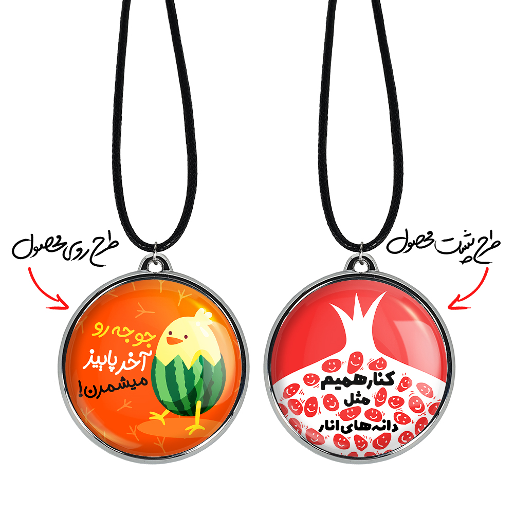 گردنبند خندالو طرح شب یلدا ، محصولی جدید و جذاب است که بصورت دو طرفه بوده، و در هر یک از طرفین گردنبند، طرح متفاوتی از یک موضوع چاپ شده است. دور پلاک گردنبند را، رینگی از جنس کروم نقره ای پوشانده که رنگ آن ثابت بوده و باعث هرچه زیباتر شدن گردنبند می شود. روکش براق روی گردنبند، مقاومت بالایی دارد و در مقابل عرق بدن با دوام بوده و با رطوبت های کم، به طرح آسیبی وارد نمی شود. چاپ گردنبند خندالو طرح شب یلدا بوسیله بهترین دستگاه های چاپ دیجیتال صورت می گیرد و طرح با شفافیتی مثال زدنی بر روی گردنبند نقش می بندد.