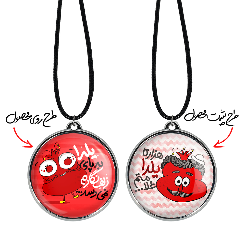 گردنبند خندالو طرح شب یلدا ، محصولی جدید و جذاب است که بصورت دو طرفه بوده، و در هر یک از طرفین گردنبند، طرح متفاوتی از یک موضوع چاپ شده است. دور پلاک گردنبند را، رینگی از جنس کروم نقره ای پوشانده که رنگ آن ثابت بوده و باعث هرچه زیباتر شدن گردنبند می شود. روکش براق روی گردنبند، مقاومت بالایی دارد و در مقابل عرق بدن با دوام بوده و با رطوبت های کم، به طرح آسیبی وارد نمی شود. چاپ گردنبند خندالو طرح شب یلدا بوسیله بهترین دستگاه های چاپ دیجیتال صورت می گیرد و طرح با شفافیتی مثال زدنی بر روی گردنبند نقش می بندد.