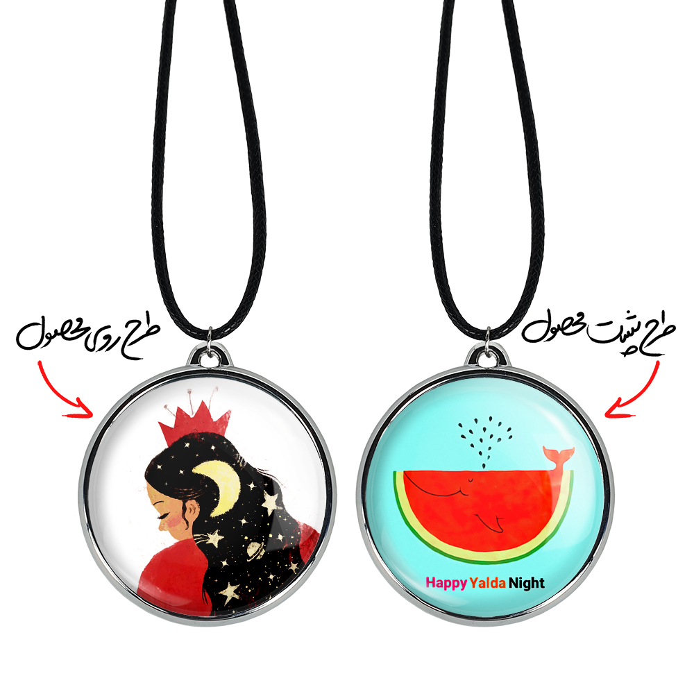 گردنبند خندالو طرح شب یلدا ، محصولی جدید و جذاب است که بصورت دو طرفه بوده، و در هر یک از طرفین گردنبند، طرح متفاوتی از یک موضوع چاپ شده است. دور پلاک گردنبند را، رینگی از جنس کروم نقره ای پوشانده که رنگ آن ثابت بوده و باعث هرچه زیباتر شدن گردنبند می شود. روکش براق روی گردنبند، مقاومت بالایی دارد و در مقابل عرق بدن با دوام بوده و با رطوبت های کم، به طرح آسیبی وارد نمی شود. چاپ گردنبند خندالو طرح شب یلدا بوسیله بهترین دستگاه های چاپ دیجیتال صورت می گیرد و طرح با شفافیتی مثال زدنی بر روی گردنبند نقش می بندد.