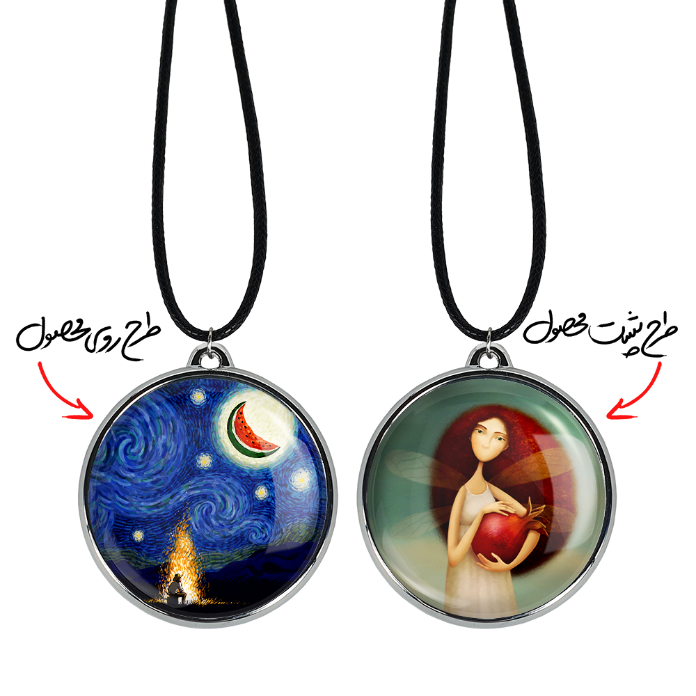 گردنبند خندالو طرح شب یلدا ، محصولی جدید و جذاب است که بصورت دو طرفه بوده، و در هر یک از طرفین گردنبند، طرح متفاوتی از یک موضوع چاپ شده است. دور پلاک گردنبند را، رینگی از جنس کروم نقره ای پوشانده که رنگ آن ثابت بوده و باعث هرچه زیباتر شدن گردنبند می شود. روکش براق روی گردنبند، مقاومت بالایی دارد و در مقابل عرق بدن با دوام بوده و با رطوبت های کم، به طرح آسیبی وارد نمی شود. چاپ گردنبند خندالو طرح شب یلدا بوسیله بهترین دستگاه های چاپ دیجیتال صورت می گیرد و طرح با شفافیتی مثال زدنی بر روی گردنبند نقش می بندد.
