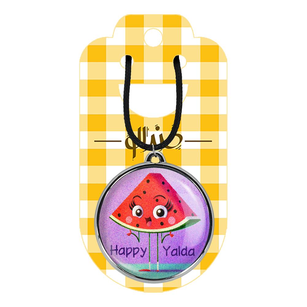 گردنبند خندالو طرح شب یلدا ، محصولی جدید و جذاب است که بصورت دو طرفه بوده، و در هر یک از طرفین گردنبند، طرح متفاوتی از یک موضوع چاپ شده است. دور پلاک گردنبند را، رینگی از جنس کروم نقره ای پوشانده که رنگ آن ثابت بوده و باعث هرچه زیباتر شدن گردنبند می شود. روکش براق روی گردنبند، مقاومت بالایی دارد و در مقابل عرق بدن با دوام بوده و با رطوبت های کم، به طرح آسیبی وارد نمی شود. چاپ گردنبند خندالو طرح شب یلدا بوسیله بهترین دستگاه های چاپ دیجیتال صورت می گیرد و طرح با شفافیتی مثال زدنی بر روی گردنبند نقش می بندد.