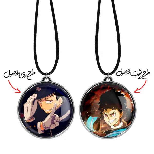 گردنبند خندالو طرح شینرا انیمه نیروی آتش، محصولی جدید و جذاب است که بصورت دو طرفه بوده، و در هر یک از طرفین گردنبند، طرح متفاوتی از یک موضوع چاپ شده است. دور پلاک گردنبند را، رینگی از جنس کروم نقره ای پوشانده که رنگ آن ثابت بوده و باعث هرچه زیباتر شدن گردنبند می شود. روکش براق روی گردنبند، مقاومت بالایی دارد و در مقابل عرق بدن با دوام بوده و با رطوبت های کم، به طرح آسیبی وارد نمی شود. چاپ گردنبند خندالو طرح شینرا انیمه نیروی آتش بوسیله بهترین دستگاه های چاپ دیجیتال صورت می گیرد و طرح با شفافیتی مثال زدنی بر روی گردنبند نقش می بندد.