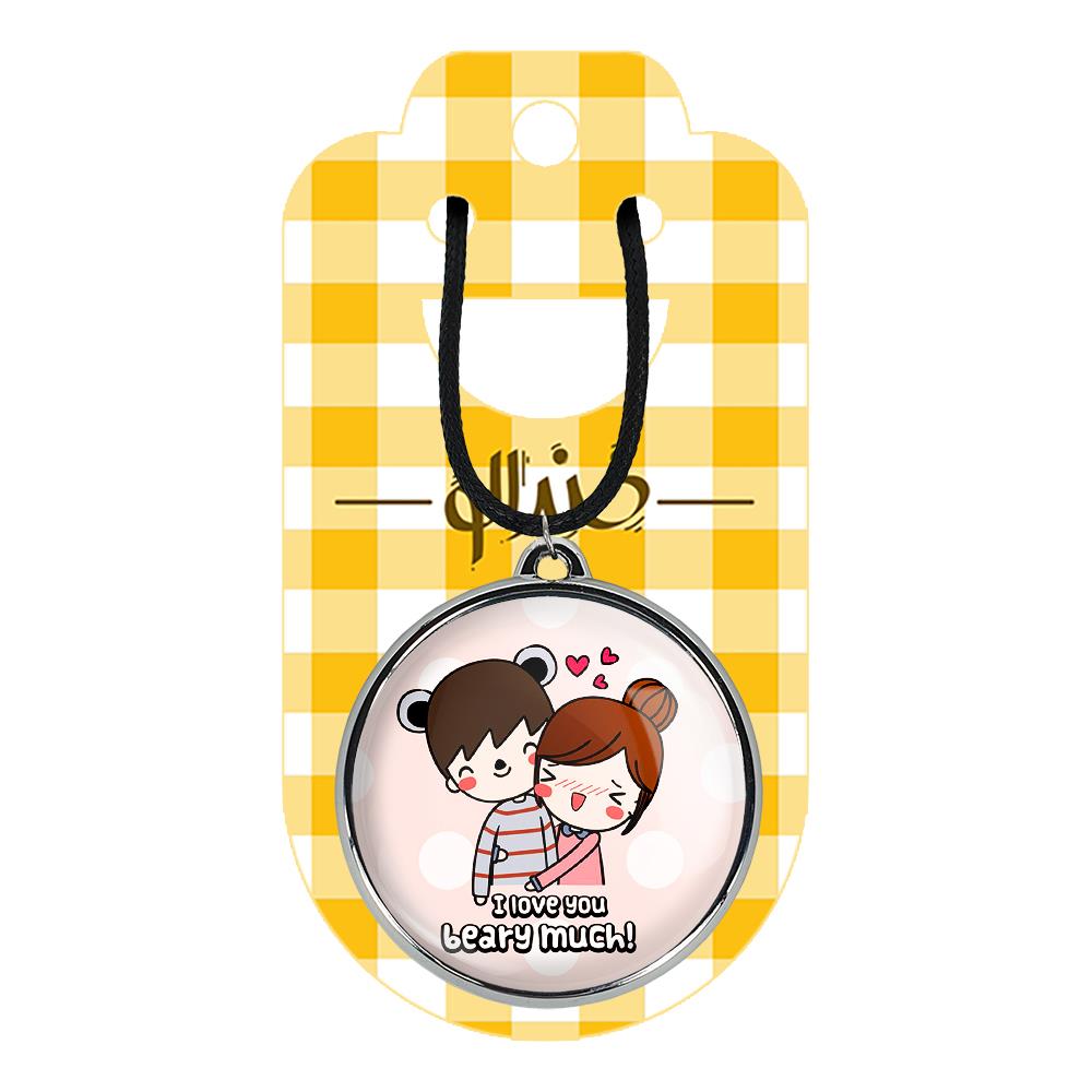 گردنبند خندالو طرح عاشقانه، محصولی جدید و جذاب است که بصورت دو طرفه بوده، و در هر یک از طرفین گردنبند، طرح متفاوتی از یک موضوع چاپ شده است. دور پلاک گردنبند را، رینگی از جنس کروم نقره ای پوشانده که رنگ آن ثابت بوده و باعث هرچه زیباتر شدن گردنبند می شود. روکش براق روی گردنبند، مقاومت بالایی دارد و در مقابل عرق بدن با دوام بوده و با رطوبت های کم، به طرح آسیبی وارد نمی شود. چاپ گردنبند خندالو طرح عاشقانه بوسیله بهترین دستگاه های چاپ دیجیتال صورت می گیرد و طرح با شفافیتی مثال زدنی بر روی گردنبند نقش می بندد.