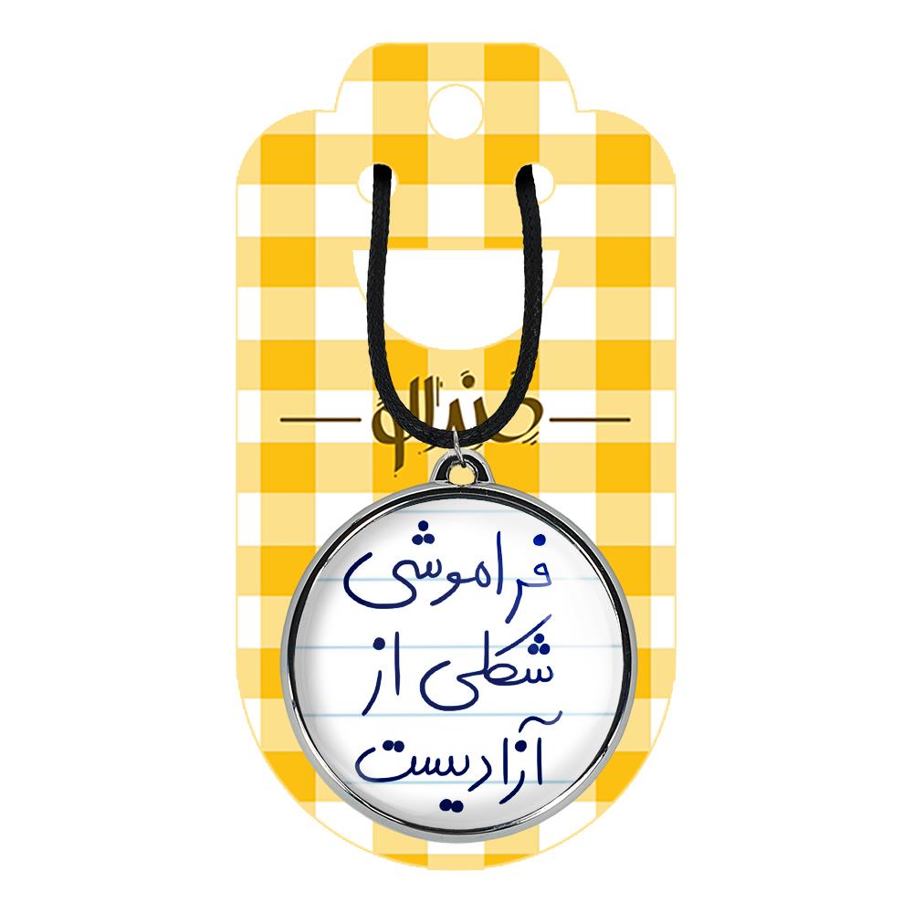 گردنبند خندالو طرح فراموشی شکلی از آزادیست ، محصولی جدید و جذاب است که بصورت دو طرفه بوده، و در هر یک از طرفین گردنبند، طرح متفاوتی از یک موضوع چاپ شده است. دور پلاک گردنبند را، رینگی از جنس کروم نقره ای پوشانده که رنگ آن ثابت بوده و باعث هرچه زیباتر شدن گردنبند می شود. روکش براق روی گردنبند، مقاومت بالایی دارد و در مقابل عرق بدن با دوام بوده و با رطوبت های کم، به طرح آسیبی وارد نمی شود. چاپ گردنبند خندالو طرح فراموشی شکلی از آزادیست بوسیله بهترین دستگاه های چاپ دیجیتال صورت می گیرد و طرح با شفافیتی مثال زدنی بر روی گردنبند نقش می بندد. جنس بند گردنبند ها نیز تولید شده از چرم صنعتی ست و با ضخامت و مقاومت بالایی که دارد آسیبی نمی بیند. زنجیر بوسیله قفل آبکاری شده به رنگ نقره ای، قابل باز و بسته شدن است که استفاده از آن را راحت تر می کند. همچنین بسته بندی مینیمال و منحصر به فرد خندالو، گردنبند ها را تبدیل به هدیه ای جذاب می کند که با قیمت مناسب و تنوع طرحی بسیار بالایی که از همه موضوعات دارد، میتواند برای هر سلیقه ای خوشحال کننده باشد.