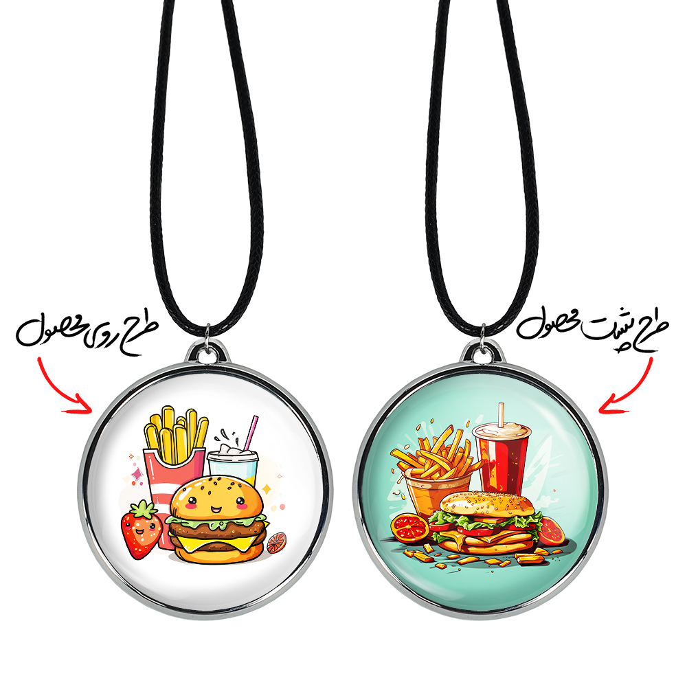 گردنبند خندالو طرح فست فود (Fast Food)، محصولی جدید و جذاب است که بصورت دو طرفه بوده، و در هر یک از طرفین گردنبند، طرح متفاوتی از یک موضوع چاپ شده است. دور پلاک گردنبند را، رینگی از جنس کروم نقره ای پوشانده که رنگ آن ثابت بوده و باعث هرچه زیباتر شدن گردنبند می شود. روکش براق روی گردنبند، مقاومت بالایی دارد و در مقابل عرق بدن با دوام بوده و با رطوبت های کم، به طرح آسیبی وارد نمی شود. چاپ گردنبند خندالو طرح فست فود (Fast Food) بوسیله بهترین دستگاه های چاپ دیجیتال صورت می گیرد و طرح با شفافیتی مثال زدنی بر روی گردنبند نقش می بندد.