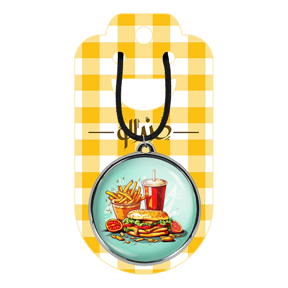 گردنبند خندالو طرح فست فود (Fast Food)، محصولی جدید و جذاب است که بصورت دو طرفه بوده، و در هر یک از طرفین گردنبند، طرح متفاوتی از یک موضوع چاپ شده است. دور پلاک گردنبند را، رینگی از جنس کروم نقره ای پوشانده که رنگ آن ثابت بوده و باعث هرچه زیباتر شدن گردنبند می شود. روکش براق روی گردنبند، مقاومت بالایی دارد و در مقابل عرق بدن با دوام بوده و با رطوبت های کم، به طرح آسیبی وارد نمی شود. چاپ گردنبند خندالو طرح فست فود (Fast Food) بوسیله بهترین دستگاه های چاپ دیجیتال صورت می گیرد و طرح با شفافیتی مثال زدنی بر روی گردنبند نقش می بندد.