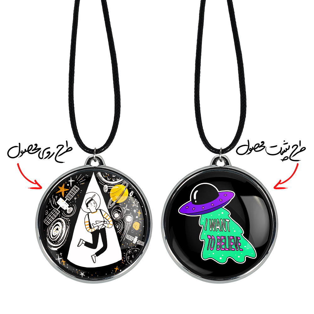 گردنبند خندالو طرح فضایی، محصولی جدید و جذاب است که بصورت دو طرفه بوده، و در هر یک از طرفین گردنبند، طرح متفاوتی از یک موضوع چاپ شده است. دور پلاک گردنبند را، رینگی از جنس کروم نقره ای پوشانده که رنگ آن ثابت بوده و باعث هرچه زیباتر شدن گردنبند می شود. روکش براق روی گردنبند، مقاومت بالایی دارد و در مقابل عرق بدن با دوام بوده و با رطوبت های کم، به طرح آسیبی وارد نمی شود. چاپ گردنبند خندالو طرح فضایی بوسیله بهترین دستگاه های چاپ دیجیتال صورت می گیرد و طرح با شفافیتی مثال زدنی بر روی گردنبند نقش می بندد.