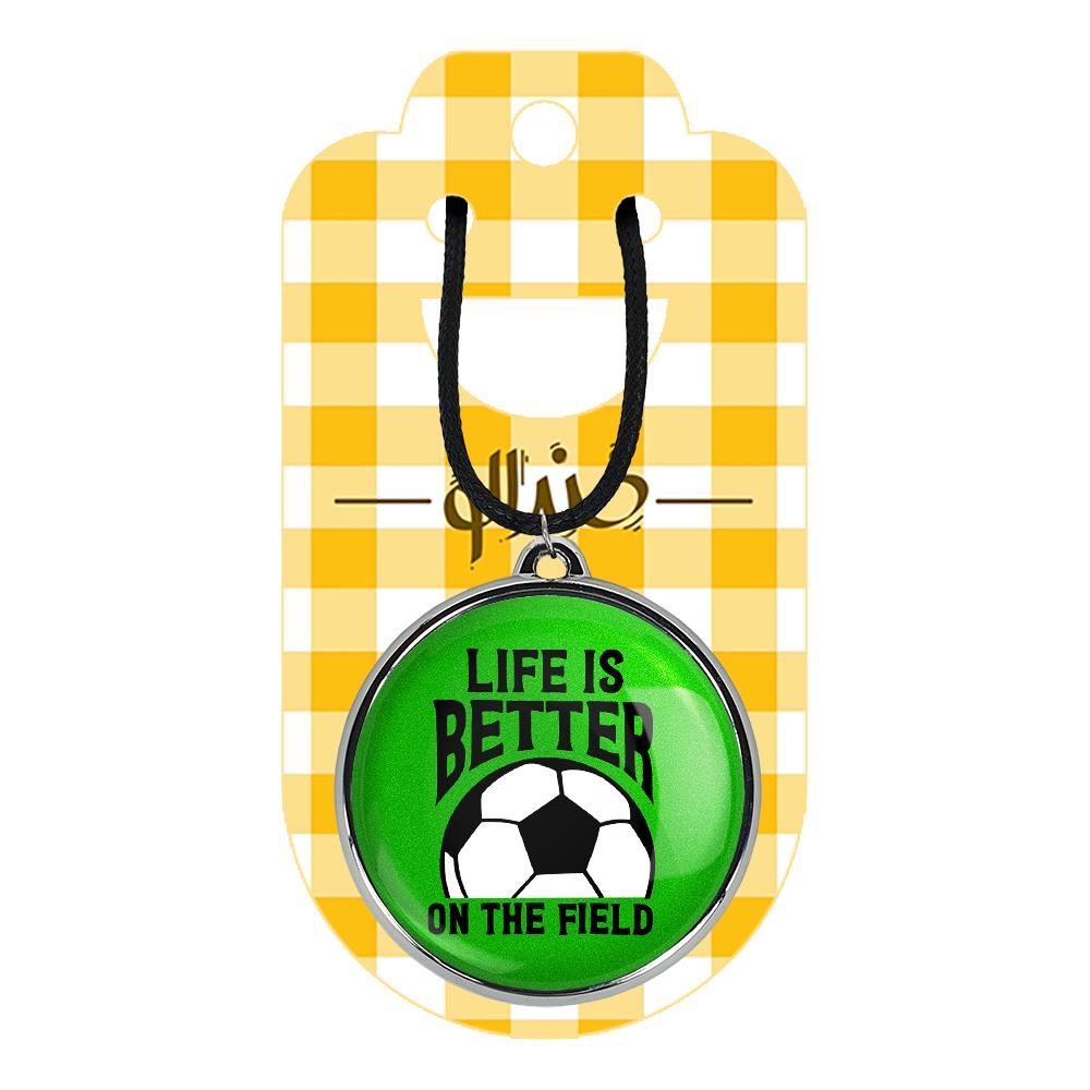 گردنبند خندالو طرح فوتبال ، محصولی جدید و جذاب است که بصورت دو طرفه بوده، و در هر یک از طرفین گردنبند، طرح متفاوتی از یک موضوع چاپ شده است. دور پلاک گردنبند را، رینگی از جنس کروم نقره ای پوشانده که رنگ آن ثابت بوده و باعث هرچه زیباتر شدن گردنبند می شود. روکش براق روی گردنبند، مقاومت بالایی دارد و در مقابل عرق بدن با دوام بوده و با رطوبت های کم، به طرح آسیبی وارد نمی شود. چاپ گردنبند خندالو طرح فوتبال بوسیله بهترین دستگاه های چاپ دیجیتال صورت می گیرد و طرح با شفافیتی مثال زدنی بر روی گردنبند نقش می بندد. جنس بند گردنبند ها نیز تولید شده از چرم صنعتی ست و با ضخامت و مقاومت بالایی که دارد آسیبی نمی بیند. زنجیر بوسیله قفل آبکاری شده به رنگ نقره ای، قابل باز و بسته شدن است که استفاده از آن را راحت تر می کند. همچنین بسته بندی مینیمال و منحصر به فرد خندالو، گردنبند ها را تبدیل به هدیه ای جذاب می کند که با قیمت مناسب و تنوع طرحی بسیار بالایی که از همه موضوعات دارد، میتواند برای هر سلیقه ای خوشحال کننده باشد.
