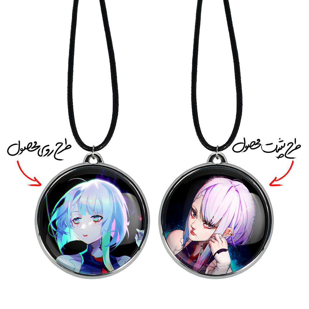 گردنبند خندالو طرح لوسی انیمه سایبرپانک، محصولی جدید و جذاب است که بصورت دو طرفه بوده، و در هر یک از طرفین گردنبند، طرح متفاوتی از یک موضوع چاپ شده است. دور پلاک گردنبند را، رینگی از جنس کروم نقره ای پوشانده که رنگ آن ثابت بوده و باعث هرچه زیباتر شدن گردنبند می شود. روکش براق روی گردنبند، مقاومت بالایی دارد و در مقابل عرق بدن با دوام بوده و با رطوبت های کم، به طرح آسیبی وارد نمی شود. چاپ گردنبند خندالو طرح لوسی انیمه سایبرپانک بوسیله بهترین دستگاه های چاپ دیجیتال صورت می گیرد و طرح با شفافیتی مثال زدنی بر روی گردنبند نقش می بندد.