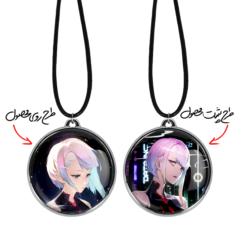 گردنبند خندالو طرح لوسی انیمه سایبرپانک، محصولی جدید و جذاب است که بصورت دو طرفه بوده، و در هر یک از طرفین گردنبند، طرح متفاوتی از یک موضوع چاپ شده است. دور پلاک گردنبند را، رینگی از جنس کروم نقره ای پوشانده که رنگ آن ثابت بوده و باعث هرچه زیباتر شدن گردنبند می شود. روکش براق روی گردنبند، مقاومت بالایی دارد و در مقابل عرق بدن با دوام بوده و با رطوبت های کم، به طرح آسیبی وارد نمی شود. چاپ گردنبند خندالو طرح لوسی انیمه سایبرپانک بوسیله بهترین دستگاه های چاپ دیجیتال صورت می گیرد و طرح با شفافیتی مثال زدنی بر روی گردنبند نقش می بندد.