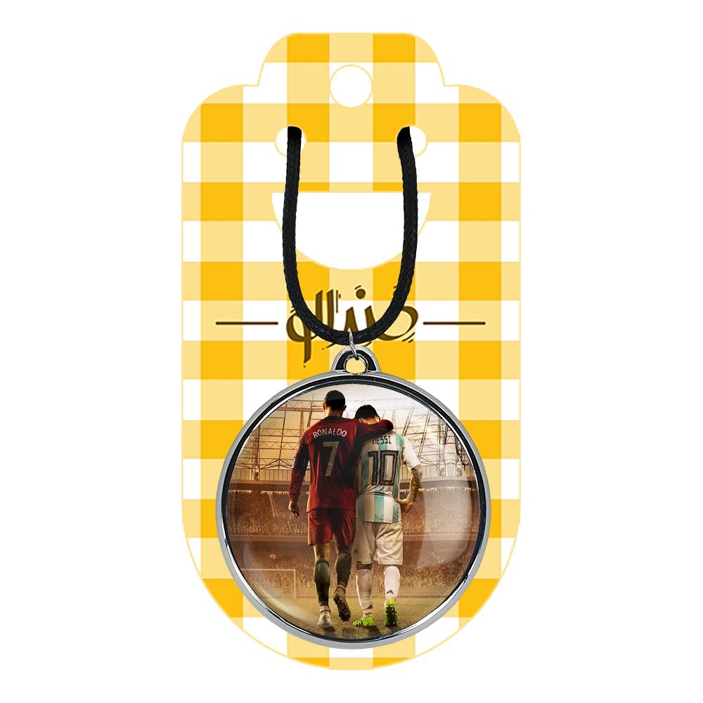 گردنبند خندالو طرح لیونل مسی و کریستین رونالدو ، محصولی جدید و جذاب است که بصورت دو طرفه بوده، و در هر یک از طرفین گردنبند، طرح متفاوتی از یک موضوع چاپ شده است. دور پلاک گردنبند را، رینگی از جنس کروم نقره ای پوشانده که رنگ آن ثابت بوده و باعث هرچه زیباتر شدن گردنبند می شود. روکش براق روی گردنبند، مقاومت بالایی دارد و در مقابل عرق بدن با دوام بوده و با رطوبت های کم، به طرح آسیبی وارد نمی شود. چاپ گردنبند خندالو طرح لیونل مسی و کریستین رونالدو بوسیله بهترین دستگاه های چاپ دیجیتال صورت می گیرد و طرح با شفافیتی مثال زدنی بر روی گردنبند نقش می بندد. جنس بند گردنبند ها نیز تولید شده از چرم صنعتی ست و با ضخامت و مقاومت بالایی که دارد آسیبی نمی بیند. زنجیر بوسیله قفل آبکاری شده به رنگ نقره ای، قابل باز و بسته شدن است که استفاده از آن را راحت تر می کند. همچنین بسته بندی مینیمال و منحصر به فرد خندالو، گردنبند ها را تبدیل به هدیه ای جذاب می کند که با قیمت مناسب و تنوع طرحی بسیار بالایی که از همه موضوعات دارد، میتواند برای هر سلیقه ای خوشحال کننده باشد.