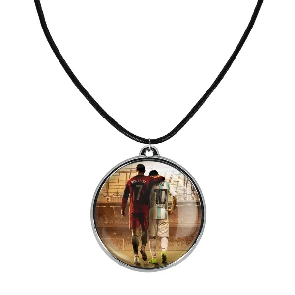 گردنبند خندالو طرح لیونل مسی و کریستین رونالدو ، محصولی جدید و جذاب است که بصورت دو طرفه بوده، و در هر یک از طرفین گردنبند، طرح متفاوتی از یک موضوع چاپ شده است. دور پلاک گردنبند را، رینگی از جنس کروم نقره ای پوشانده که رنگ آن ثابت بوده و باعث هرچه زیباتر شدن گردنبند می شود. روکش براق روی گردنبند، مقاومت بالایی دارد و در مقابل عرق بدن با دوام بوده و با رطوبت های کم، به طرح آسیبی وارد نمی شود. چاپ گردنبند خندالو طرح لیونل مسی و کریستین رونالدو بوسیله بهترین دستگاه های چاپ دیجیتال صورت می گیرد و طرح با شفافیتی مثال زدنی بر روی گردنبند نقش می بندد. جنس بند گردنبند ها نیز تولید شده از چرم صنعتی ست و با ضخامت و مقاومت بالایی که دارد آسیبی نمی بیند. زنجیر بوسیله قفل آبکاری شده به رنگ نقره ای، قابل باز و بسته شدن است که استفاده از آن را راحت تر می کند. همچنین بسته بندی مینیمال و منحصر به فرد خندالو، گردنبند ها را تبدیل به هدیه ای جذاب می کند که با قیمت مناسب و تنوع طرحی بسیار بالایی که از همه موضوعات دارد، میتواند برای هر سلیقه ای خوشحال کننده باشد.