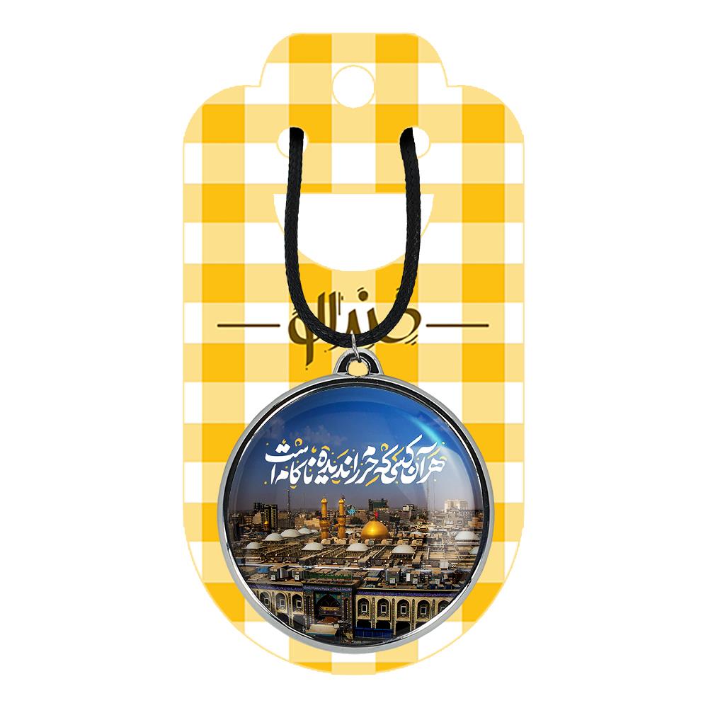 گردنبند خندالو طرح محرم هر آن کسی که حرم را ندیده ناکام است ، محصولی جدید و جذاب است که بصورت دو طرفه بوده، و در هر یک از طرفین گردنبند، طرح متفاوتی از یک موضوع چاپ شده است. دور پلاک گردنبند را، رینگی از جنس کروم نقره ای پوشانده که رنگ آن ثابت بوده و باعث هرچه زیباتر شدن گردنبند می شود. روکش براق روی گردنبند، مقاومت بالایی دارد و در مقابل عرق بدن با دوام بوده و با رطوبت های کم، به طرح آسیبی وارد نمی شود. چاپ گردنبند خندالو طرح محرم هر آن کسی که حرم را ندیده ناکام است بوسیله بهترین دستگاه های چاپ دیجیتال صورت می گیرد و طرح با شفافیتی مثال زدنی بر روی گردنبند نقش می بندد. جنس بند گردنبند ها نیز تولید شده از چرم صنعتی ست و با ضخامت و مقاومت بالایی که دارد آسیبی نمی بیند. زنجیر بوسیله قفل آبکاری شده به رنگ نقره ای، قابل باز و بسته شدن است که استفاده از آن را راحت تر می کند. همچنین بسته بندی مینیمال و منحصر به فرد خندالو، گردنبند ها را تبدیل به هدیه ای جذاب می کند که با قیمت مناسب و تنوع طرحی بسیار بالایی که از همه موضوعات دارد، میتواند برای هر سلیقه ای خوشحال کننده باشد.
