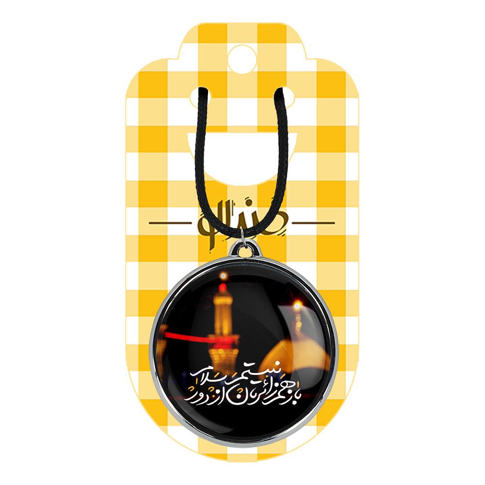 گردنبند خندالو طرح محرم کربلا باز هم زائرتان نیستم از دور سلام ، محصولی جدید و جذاب است که بصورت دو طرفه بوده، و در هر یک از طرفین گردنبند، طرح متفاوتی از یک موضوع چاپ شده است. دور پلاک گردنبند را، رینگی از جنس کروم نقره ای پوشانده که رنگ آن ثابت بوده و باعث هرچه زیباتر شدن گردنبند می شود. روکش براق روی گردنبند، مقاومت بالایی دارد و در مقابل عرق بدن با دوام بوده و با رطوبت های کم، به طرح آسیبی وارد نمی شود. چاپ گردنبند خندالو طرح محرم کربلا باز هم زائرتان نیستم از دور سلام بوسیله بهترین دستگاه های چاپ دیجیتال صورت می گیرد و طرح با شفافیتی مثال زدنی بر روی گردنبند نقش می بندد. جنس بند گردنبند ها نیز تولید شده از چرم صنعتی ست و با ضخامت و مقاومت بالایی که دارد آسیبی نمی بیند. زنجیر بوسیله قفل آبکاری شده به رنگ نقره ای، قابل باز و بسته شدن است که استفاده از آن را راحت تر می کند. همچنین بسته بندی مینیمال و منحصر به فرد خندالو، گردنبند ها را تبدیل به هدیه ای جذاب می کند که با قیمت مناسب و تنوع طرحی بسیار بالایی که از همه موضوعات دارد، میتواند برای هر سلیقه ای خوشحال کننده باشد.