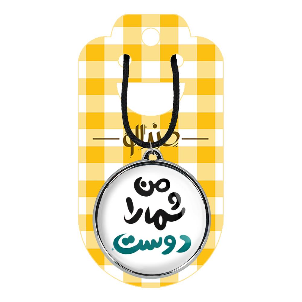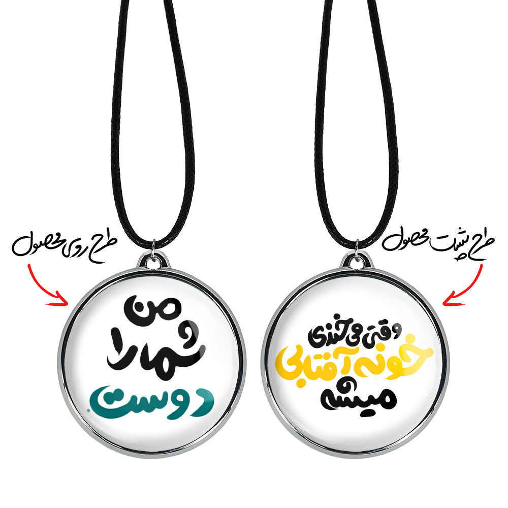 گردنبند خندالو طرح من شما را دوست ، محصولی جدید و جذاب است که بصورت دو طرفه بوده، و در هر یک از طرفین گردنبند، طرح متفاوتی از یک موضوع چاپ شده است. دور پلاک گردنبند را، رینگی از جنس کروم نقره ای پوشانده که رنگ آن ثابت بوده و باعث هرچه زیباتر شدن گردنبند می شود. روکش براق روی گردنبند، مقاومت بالایی دارد و در مقابل عرق بدن با دوام بوده و با رطوبت های کم، به طرح آسیبی وارد نمی شود. چاپ گردنبند خندالو طرح من شما را دوست بوسیله بهترین دستگاه های چاپ دیجیتال صورت می گیرد و طرح با شفافیتی مثال زدنی بر روی گردنبند نقش می بندد. جنس بند گردنبند ها نیز تولید شده از چرم صنعتی ست و با ضخامت و مقاومت بالایی که دارد آسیبی نمی بیند. زنجیر بوسیله قفل آبکاری شده به رنگ نقره ای، قابل باز و بسته شدن است که استفاده از آن را راحت تر می کند. همچنین بسته بندی مینیمال و منحصر به فرد خندالو، گردنبند ها را تبدیل به هدیه ای جذاب می کند که با قیمت مناسب و تنوع طرحی بسیار بالایی که از همه موضوعات دارد، میتواند برای هر سلیقه ای خوشحال کننده باشد.