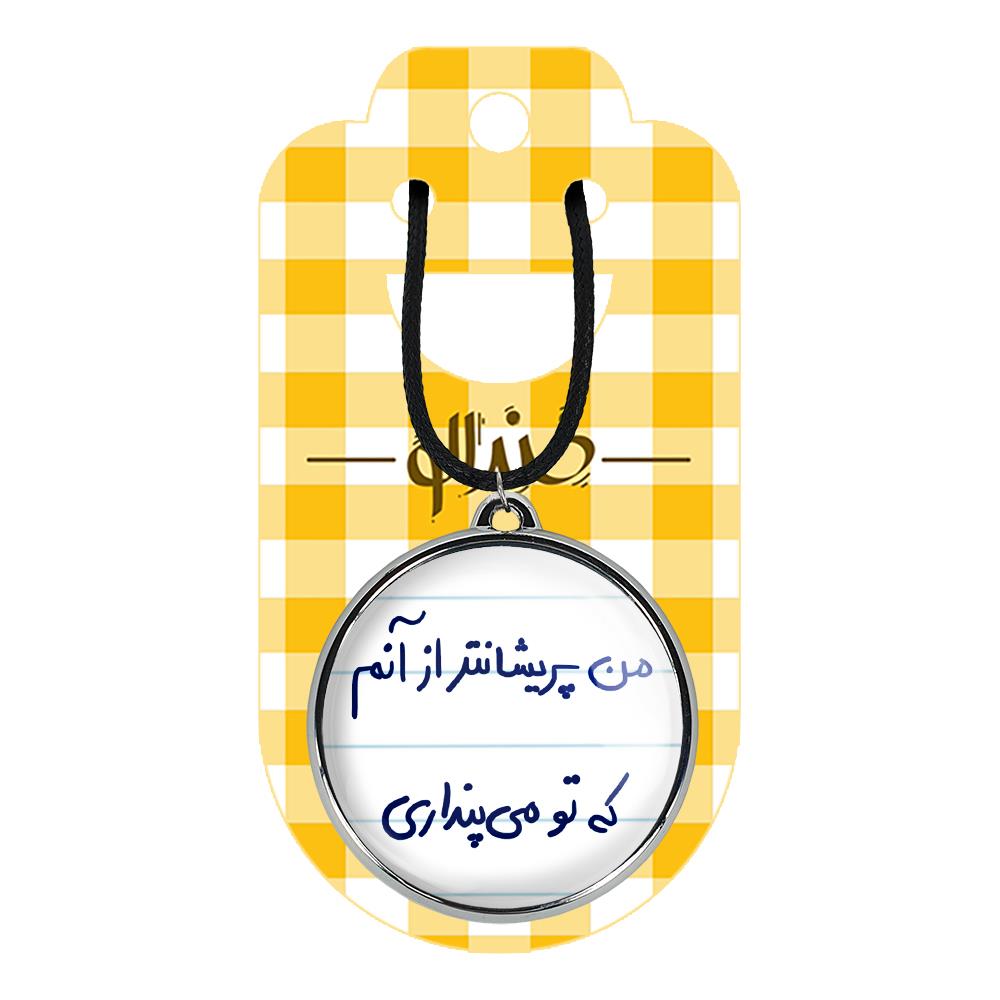 گردنبند خندالو طرح من پریشان تر از آنم که تو می پنداری ، محصولی جدید و جذاب است که بصورت دو طرفه بوده، و در هر یک از طرفین گردنبند، طرح متفاوتی از یک موضوع چاپ شده است. دور پلاک گردنبند را، رینگی از جنس کروم نقره ای پوشانده که رنگ آن ثابت بوده و باعث هرچه زیباتر شدن گردنبند می شود. روکش براق روی گردنبند، مقاومت بالایی دارد و در مقابل عرق بدن با دوام بوده و با رطوبت های کم، به طرح آسیبی وارد نمی شود. چاپ گردنبند خندالو طرح من پریشان تر از آنم که تو می پنداری بوسیله بهترین دستگاه های چاپ دیجیتال صورت می گیرد و طرح با شفافیتی مثال زدنی بر روی گردنبند نقش می بندد.