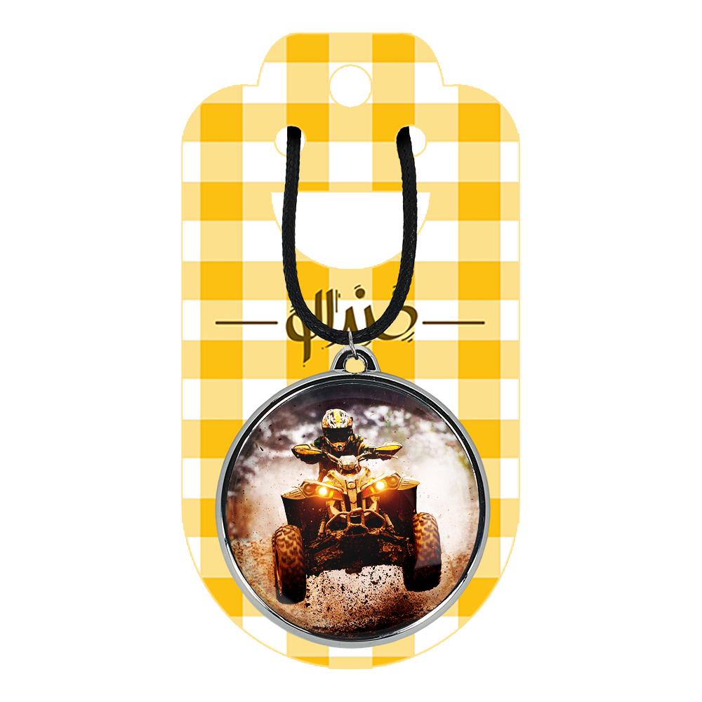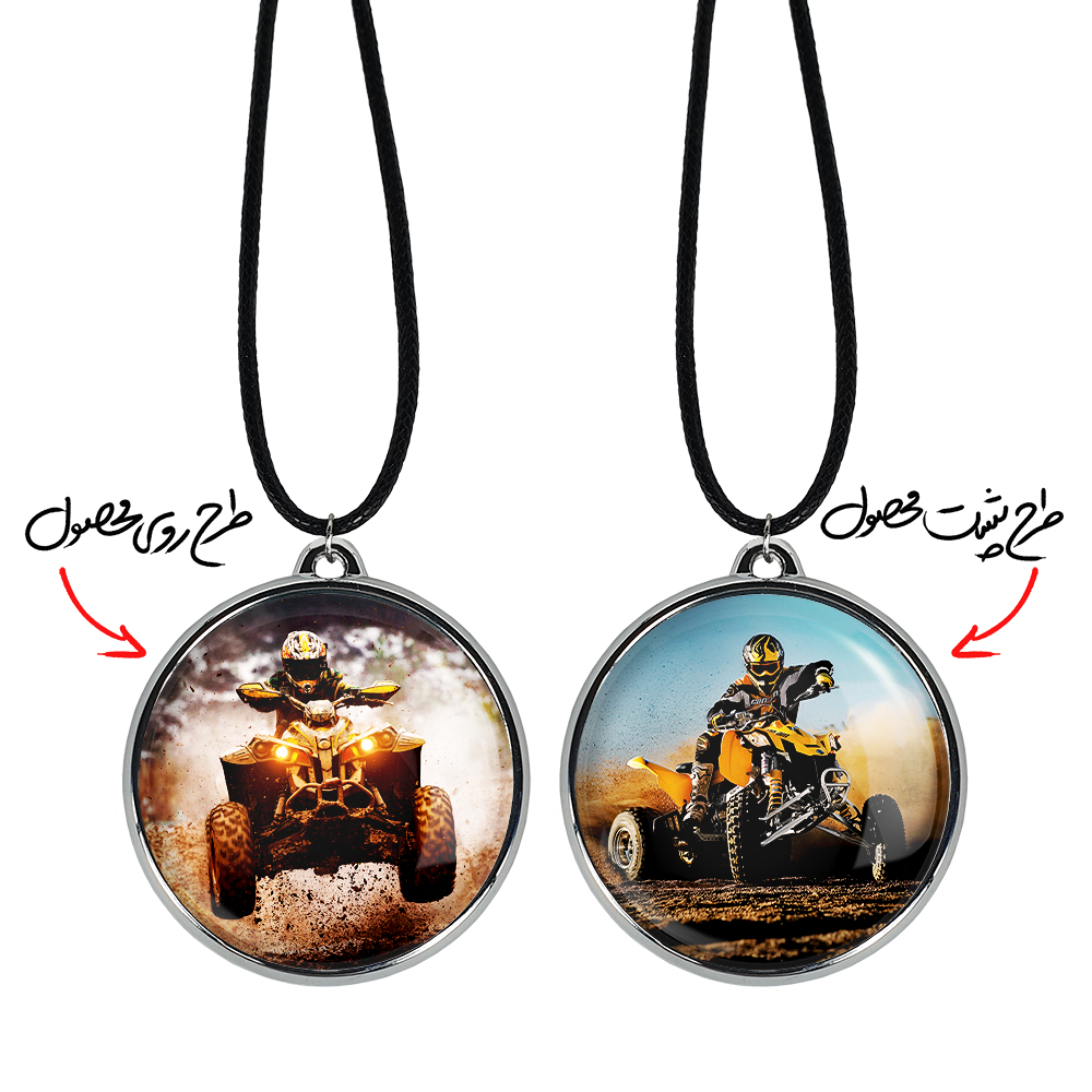گردنبند خندالو طرح موتور چهار چرخ، محصولی جدید و جذاب است که بصورت دو طرفه بوده، و در هر یک از طرفین گردنبند، طرح متفاوتی از یک موضوع چاپ شده است. دور پلاک گردنبند را، رینگی از جنس کروم نقره ای پوشانده که رنگ آن ثابت بوده و باعث هرچه زیباتر شدن گردنبند می شود. روکش براق روی گردنبند، مقاومت بالایی دارد و در مقابل عرق بدن با دوام بوده و با رطوبت های کم، به طرح آسیبی وارد نمی شود. چاپ گردنبند خندالو طرح موتور چهار چرخ بوسیله بهترین دستگاه های چاپ دیجیتال صورت می گیرد و طرح با شفافیتی مثال زدنی بر روی گردنبند نقش می بندد.