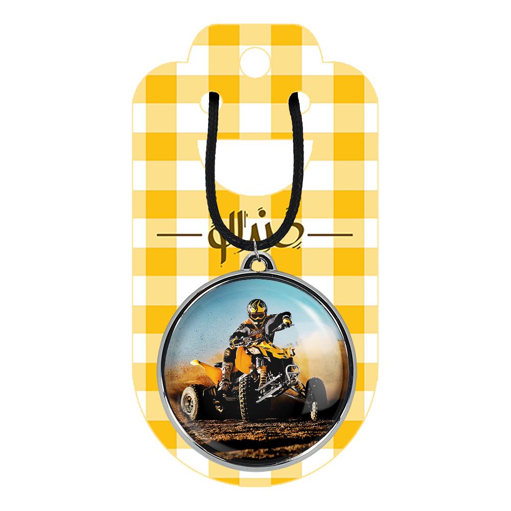 گردنبند خندالو طرح موتور چهار چرخ، محصولی جدید و جذاب است که بصورت دو طرفه بوده، و در هر یک از طرفین گردنبند، طرح متفاوتی از یک موضوع چاپ شده است. دور پلاک گردنبند را، رینگی از جنس کروم نقره ای پوشانده که رنگ آن ثابت بوده و باعث هرچه زیباتر شدن گردنبند می شود. روکش براق روی گردنبند، مقاومت بالایی دارد و در مقابل عرق بدن با دوام بوده و با رطوبت های کم، به طرح آسیبی وارد نمی شود. چاپ گردنبند خندالو طرح موتور چهار چرخ بوسیله بهترین دستگاه های چاپ دیجیتال صورت می گیرد و طرح با شفافیتی مثال زدنی بر روی گردنبند نقش می بندد.