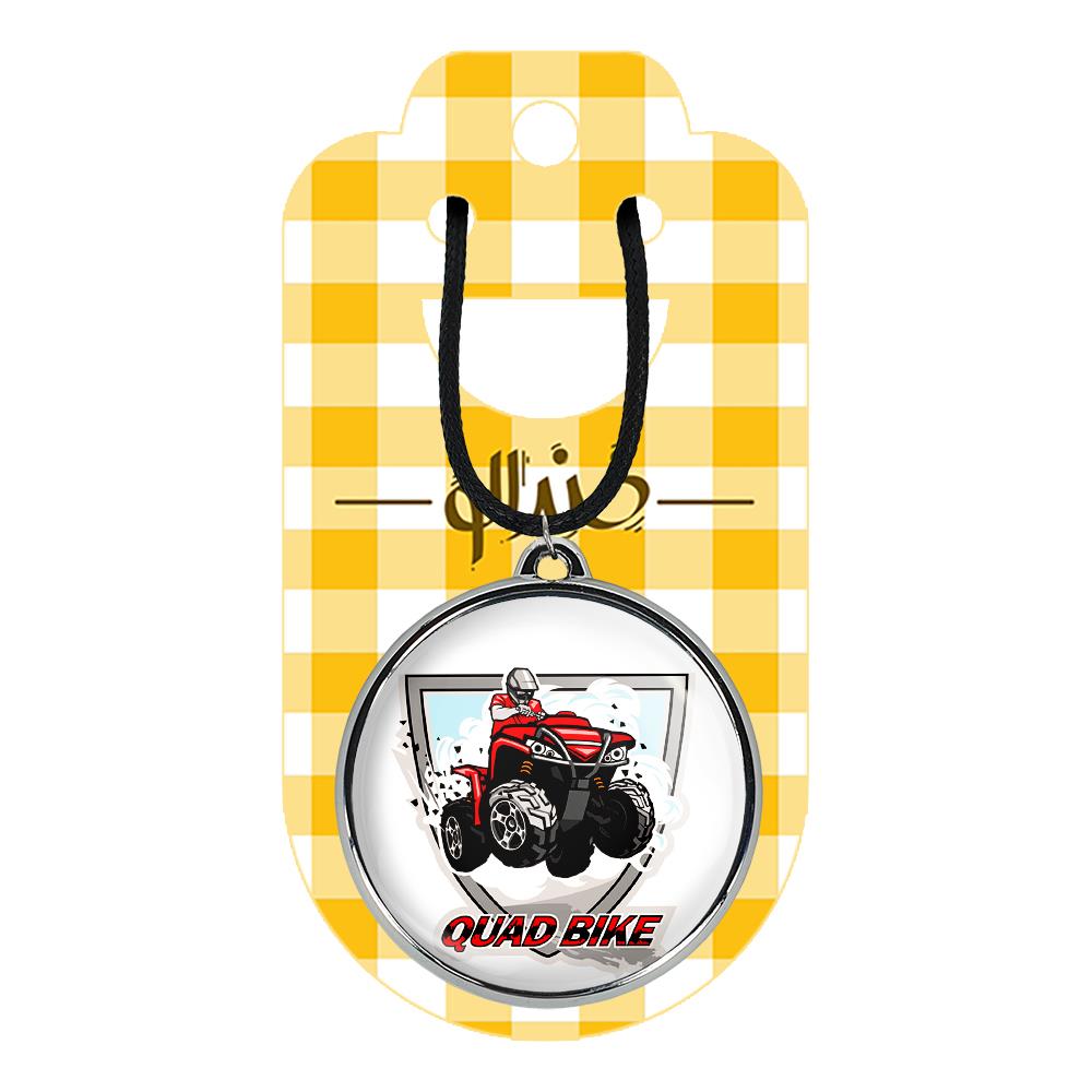 گردنبند خندالو طرح موتور چهار چرخ، محصولی جدید و جذاب است که بصورت دو طرفه بوده، و در هر یک از طرفین گردنبند، طرح متفاوتی از یک موضوع چاپ شده است. دور پلاک گردنبند را، رینگی از جنس کروم نقره ای پوشانده که رنگ آن ثابت بوده و باعث هرچه زیباتر شدن گردنبند می شود. روکش براق روی گردنبند، مقاومت بالایی دارد و در مقابل عرق بدن با دوام بوده و با رطوبت های کم، به طرح آسیبی وارد نمی شود. چاپ گردنبند خندالو طرح موتور چهار چرخ بوسیله بهترین دستگاه های چاپ دیجیتال صورت می گیرد و طرح با شفافیتی مثال زدنی بر روی گردنبند نقش می بندد.
