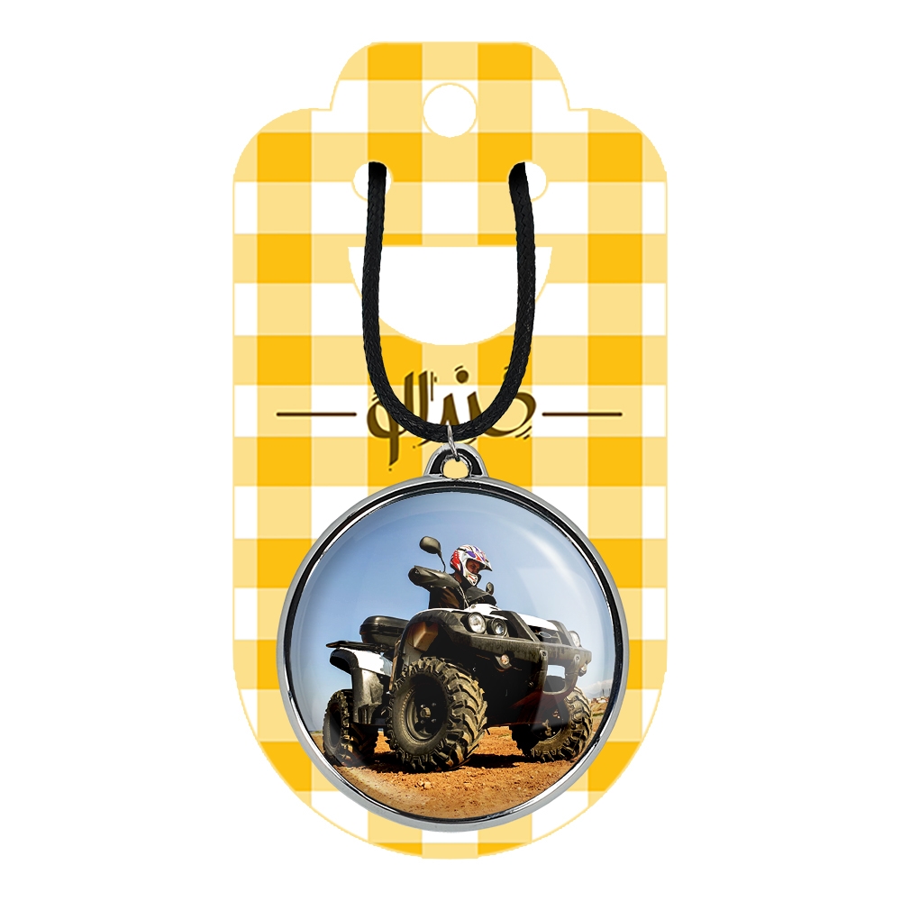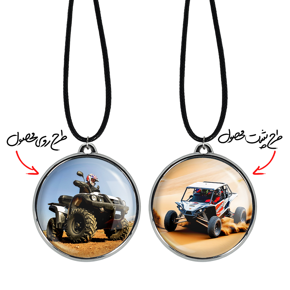 گردنبند خندالو طرح موتور چهار چرخ، محصولی جدید و جذاب است که بصورت دو طرفه بوده، و در هر یک از طرفین گردنبند، طرح متفاوتی از یک موضوع چاپ شده است. دور پلاک گردنبند را، رینگی از جنس کروم نقره ای پوشانده که رنگ آن ثابت بوده و باعث هرچه زیباتر شدن گردنبند می شود. روکش براق روی گردنبند، مقاومت بالایی دارد و در مقابل عرق بدن با دوام بوده و با رطوبت های کم، به طرح آسیبی وارد نمی شود. چاپ گردنبند خندالو طرح موتور چهار چرخ بوسیله بهترین دستگاه های چاپ دیجیتال صورت می گیرد و طرح با شفافیتی مثال زدنی بر روی گردنبند نقش می بندد.