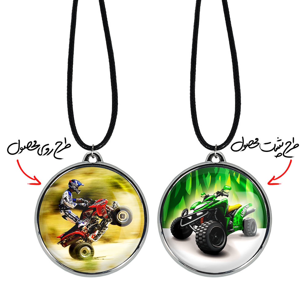 گردنبند خندالو طرح موتور چهار چرخ، محصولی جدید و جذاب است که بصورت دو طرفه بوده، و در هر یک از طرفین گردنبند، طرح متفاوتی از یک موضوع چاپ شده است. دور پلاک گردنبند را، رینگی از جنس کروم نقره ای پوشانده که رنگ آن ثابت بوده و باعث هرچه زیباتر شدن گردنبند می شود. روکش براق روی گردنبند، مقاومت بالایی دارد و در مقابل عرق بدن با دوام بوده و با رطوبت های کم، به طرح آسیبی وارد نمی شود. چاپ گردنبند خندالو طرح موتور چهار چرخ بوسیله بهترین دستگاه های چاپ دیجیتال صورت می گیرد و طرح با شفافیتی مثال زدنی بر روی گردنبند نقش می بندد.