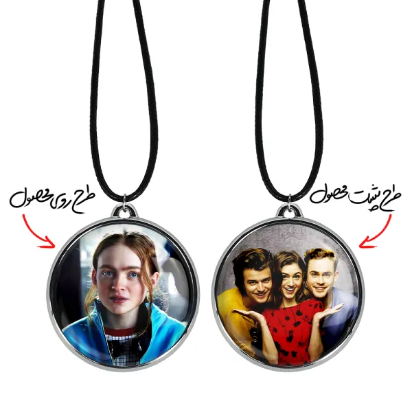 گردنبند خندالو طرح مکس سریال استرنجر تینگز Stranger Things ، محصولی جدید و جذاب است که بصورت دو طرفه بوده، و در هر یک از طرفین گردنبند، طرح متفاوتی از یک موضوع چاپ شده است. دور پلاک گردنبند را، رینگی از جنس کروم نقره ای پوشانده که رنگ آن ثابت بوده و باعث هرچه زیباتر شدن گردنبند می شود. روکش براق روی گردنبند، مقاومت بالایی دارد و در مقابل عرق بدن با دوام بوده و با رطوبت های کم، به طرح آسیبی وارد نمی شود. چاپ گردنبند خندالو طرح مکس سریال استرنجر تینگز Stranger Things بوسیله بهترین دستگاه های چاپ دیجیتال صورت می گیرد و طرح با شفافیتی مثال زدنی بر روی گردنبند نقش می بندد.
