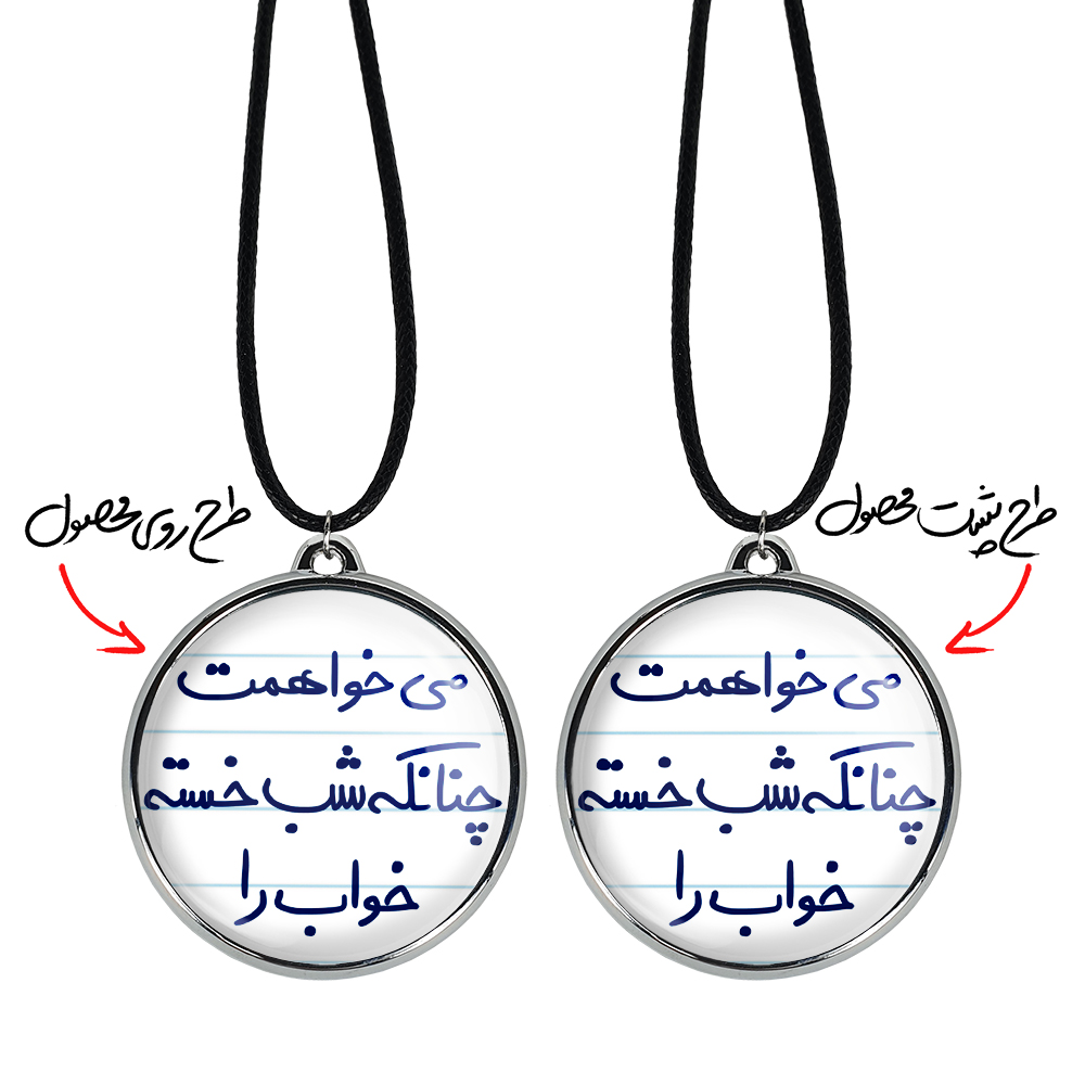 گردنبند خندالو طرح می خواهمت چنانکه شب خسته خواب را ، محصولی جدید و جذاب است که بصورت دو طرفه بوده، و در هر یک از طرفین گردنبند، طرح متفاوتی از یک موضوع چاپ شده است. دور پلاک گردنبند را، رینگی از جنس کروم نقره ای پوشانده که رنگ آن ثابت بوده و باعث هرچه زیباتر شدن گردنبند می شود. روکش براق روی گردنبند، مقاومت بالایی دارد و در مقابل عرق بدن با دوام بوده و با رطوبت های کم، به طرح آسیبی وارد نمی شود. چاپ گردنبند خندالو طرح می خواهمت چنانکه شب خسته خواب را بوسیله بهترین دستگاه های چاپ دیجیتال صورت می گیرد و طرح با شفافیتی مثال زدنی بر روی گردنبند نقش می بندد.