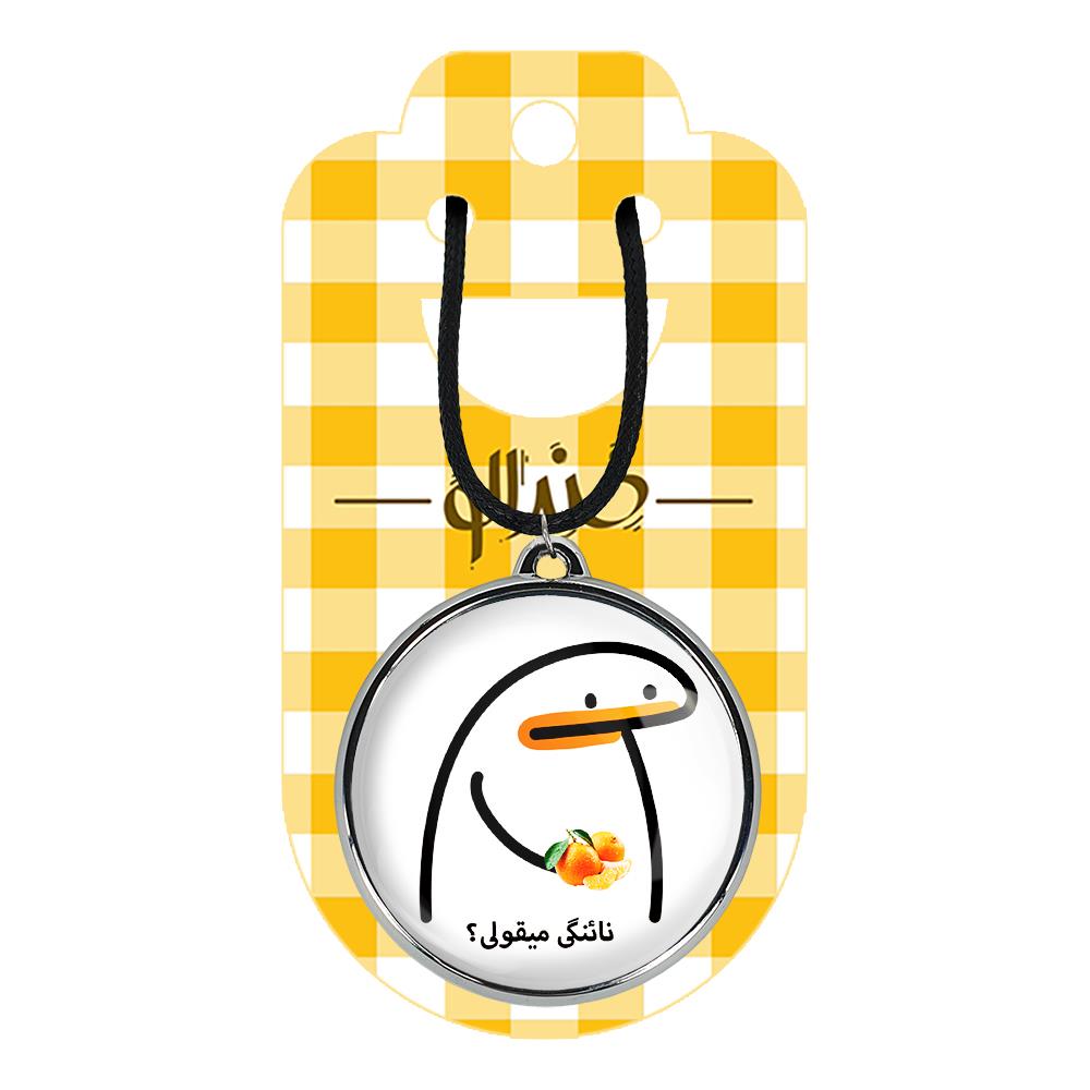 گردنبند خندالو طرح نائنگی میقولی؟، محصولی جدید و جذاب است که بصورت دو طرفه بوده، و در هر یک از طرفین گردنبند، طرح متفاوتی از یک موضوع چاپ شده است. دور پلاک گردنبند را، رینگی از جنس کروم نقره ای پوشانده که رنگ آن ثابت بوده و باعث هرچه زیباتر شدن گردنبند می شود. روکش براق روی گردنبند، مقاومت بالایی دارد و در مقابل عرق بدن با دوام بوده و با رطوبت های کم، به طرح آسیبی وارد نمی شود. چاپ گردنبند خندالو طرح نائنگی میقولی؟ بوسیله بهترین دستگاه های چاپ دیجیتال صورت می گیرد و طرح با شفافیتی مثال زدنی بر روی گردنبند نقش می بندد. جنس بند گردنبند ها نیز تولید شده از چرم صنعتی ست و با ضخامت و مقاومت بالایی که دارد آسیبی نمی بیند. زنجیر بوسیله قفل آبکاری شده به رنگ نقره ای، قابل باز و بسته شدن است که استفاده از آن را راحت تر می کند. همچنین بسته بندی مینیمال و منحصر به فرد خندالو، گردنبند ها را تبدیل به هدیه ای جذاب می کند که با قیمت مناسب و تنوع طرحی بسیار بالایی که از همه موضوعات دارد، میتواند برای هر سلیقه ای خوشحال کننده باشد.