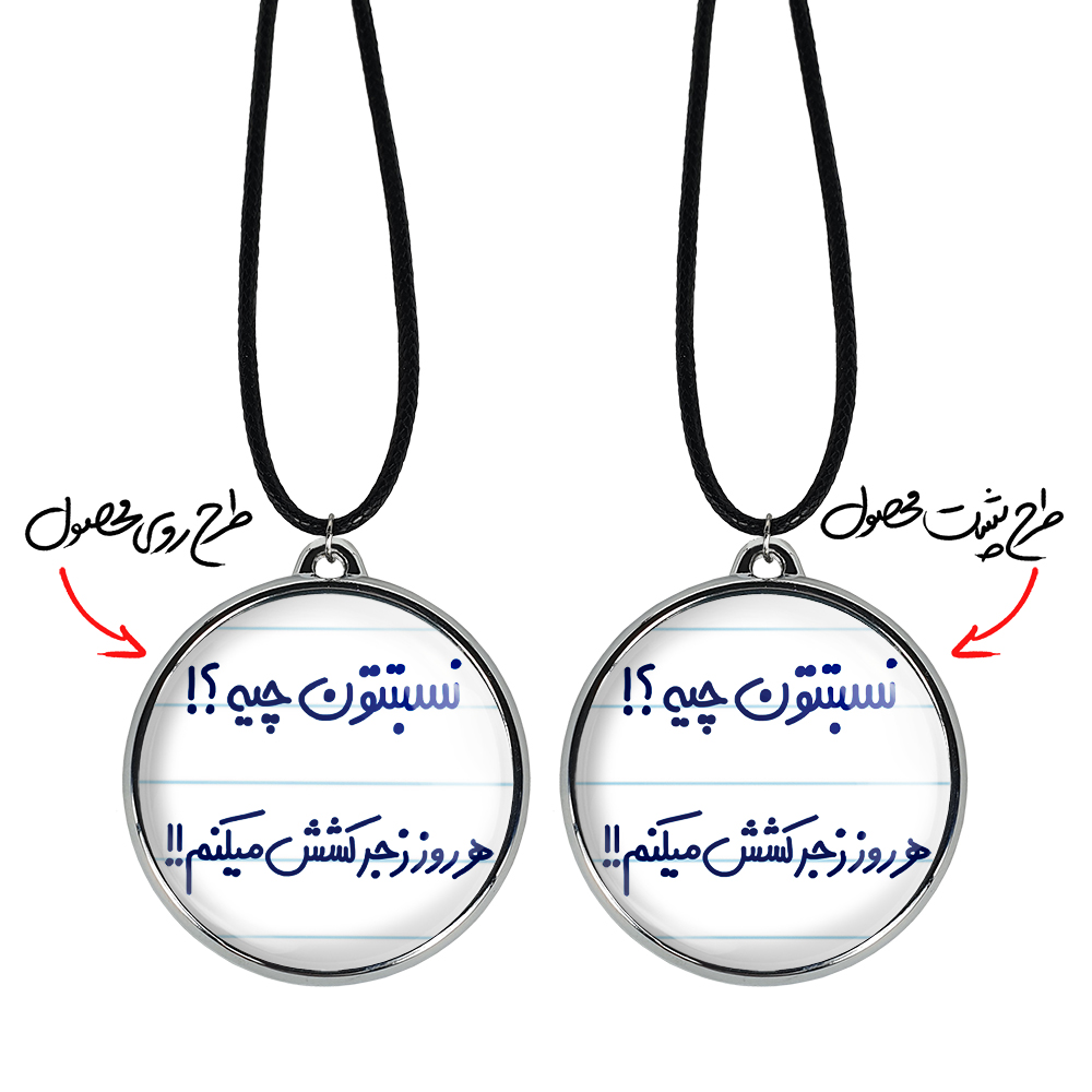 گردنبند خندالو طرح نسبتتون چیه؟! هرروز زجرکشش میکنم!! ، محصولی جدید و جذاب است که بصورت دو طرفه بوده، و در هر یک از طرفین گردنبند، طرح متفاوتی از یک موضوع چاپ شده است. دور پلاک گردنبند را، رینگی از جنس کروم نقره ای پوشانده که رنگ آن ثابت بوده و باعث هرچه زیباتر شدن گردنبند می شود. روکش براق روی گردنبند، مقاومت بالایی دارد و در مقابل عرق بدن با دوام بوده و با رطوبت های کم، به طرح آسیبی وارد نمی شود. چاپ گردنبند خندالو طرح نسبتتون چیه؟! هرروز زجرکشش میکنم!! بوسیله بهترین دستگاه های چاپ دیجیتال صورت می گیرد و طرح با شفافیتی مثال زدنی بر روی گردنبند نقش می بندد. جنس بند گردنبند ها نیز تولید شده از چرم صنعتی ست و با ضخامت و مقاومت بالایی که دارد آسیبی نمی بیند. زنجیر بوسیله قفل آبکاری شده به رنگ نقره ای، قابل باز و بسته شدن است که استفاده از آن را راحت تر می کند. همچنین بسته بندی مینیمال و منحصر به فرد خندالو، گردنبند ها را تبدیل به هدیه ای جذاب می کند که با قیمت مناسب و تنوع طرحی بسیار بالایی که از همه موضوعات دارد، میتواند برای هر سلیقه ای خوشحال کننده باشد.