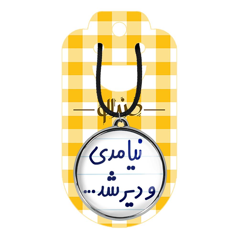 گردنبند خندالو طرح نیامدی و دیر شد… ، محصولی جدید و جذاب است که بصورت دو طرفه بوده، و در هر یک از طرفین گردنبند، طرح متفاوتی از یک موضوع چاپ شده است. دور پلاک گردنبند را، رینگی از جنس کروم نقره ای پوشانده که رنگ آن ثابت بوده و باعث هرچه زیباتر شدن گردنبند می شود. روکش براق روی گردنبند، مقاومت بالایی دارد و در مقابل عرق بدن با دوام بوده و با رطوبت های کم، به طرح آسیبی وارد نمی شود. چاپ گردنبند خندالو طرح نیامدی و دیر شد… بوسیله بهترین دستگاه های چاپ دیجیتال صورت می گیرد و طرح با شفافیتی مثال زدنی بر روی گردنبند نقش می بندد. جنس بند گردنبند ها نیز تولید شده از چرم صنعتی ست و با ضخامت و مقاومت بالایی که دارد آسیبی نمی بیند. زنجیر بوسیله قفل آبکاری شده به رنگ نقره ای، قابل باز و بسته شدن است که استفاده از آن را راحت تر می کند. همچنین بسته بندی مینیمال و منحصر به فرد خندالو، گردنبند ها را تبدیل به هدیه ای جذاب می کند که با قیمت مناسب و تنوع طرحی بسیار بالایی که از همه موضوعات دارد، میتواند برای هر سلیقه ای خوشحال کننده باشد.