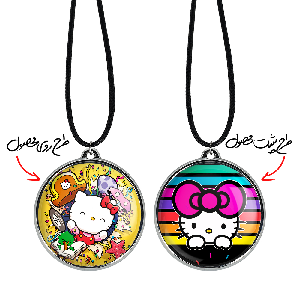 گردنبند خندالو طرح هلو کیتی، محصولی جدید و جذاب است که بصورت دو طرفه بوده، و در هر یک از طرفین گردنبند، طرح متفاوتی از یک موضوع چاپ شده است. دور پلاک گردنبند را، رینگی از جنس کروم نقره ای پوشانده که رنگ آن ثابت بوده و باعث هرچه زیباتر شدن گردنبند می شود. روکش براق روی گردنبند، مقاومت بالایی دارد و در مقابل عرق بدن با دوام بوده و با رطوبت های کم، به طرح آسیبی وارد نمی شود. چاپ گردنبند خندالو طرح هلو کیتی بوسیله بهترین دستگاه های چاپ دیجیتال صورت می گیرد و طرح با شفافیتی مثال زدنی بر روی گردنبند نقش می بندد.
