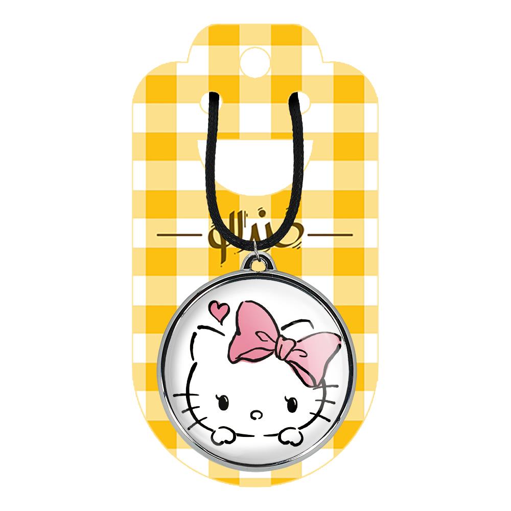 گردنبند خندالو طرح هلو کیتی Hello Kitty ، محصولی جدید و جذاب است که بصورت دو طرفه بوده، و در هر یک از طرفین گردنبند، طرح متفاوتی از یک موضوع چاپ شده است. دور پلاک گردنبند را، رینگی از جنس کروم نقره ای پوشانده که رنگ آن ثابت بوده و باعث هرچه زیباتر شدن گردنبند می شود. روکش براق روی گردنبند، مقاومت بالایی دارد و در مقابل عرق بدن با دوام بوده و با رطوبت های کم، به طرح آسیبی وارد نمی شود. چاپ گردنبند خندالو طرح هلو کیتی Hello Kitty بوسیله بهترین دستگاه های چاپ دیجیتال صورت می گیرد و طرح با شفافیتی مثال زدنی بر روی گردنبند نقش می بندد.