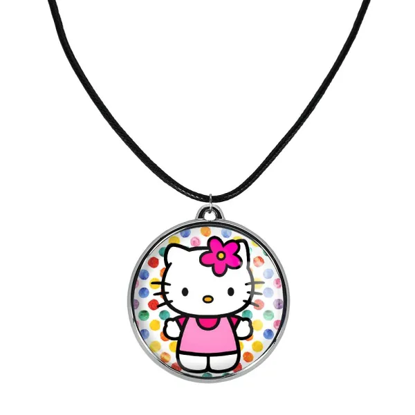 گردنبند خندالو طرح هلو کیتی Hello Kitty ، محصولی جدید و جذاب است که بصورت دو طرفه بوده، و در هر یک از طرفین گردنبند، طرح متفاوتی از یک موضوع چاپ شده است. دور پلاک گردنبند را، رینگی از جنس کروم نقره ای پوشانده که رنگ آن ثابت بوده و باعث هرچه زیباتر شدن گردنبند می شود. روکش براق روی گردنبند، مقاومت بالایی دارد و در مقابل عرق بدن با دوام بوده و با رطوبت های کم، به طرح آسیبی وارد نمی شود. چاپ گردنبند خندالو طرح هلو کیتی Hello Kitty بوسیله بهترین دستگاه های چاپ دیجیتال صورت می گیرد و طرح با شفافیتی مثال زدنی بر روی گردنبند نقش می بندد.