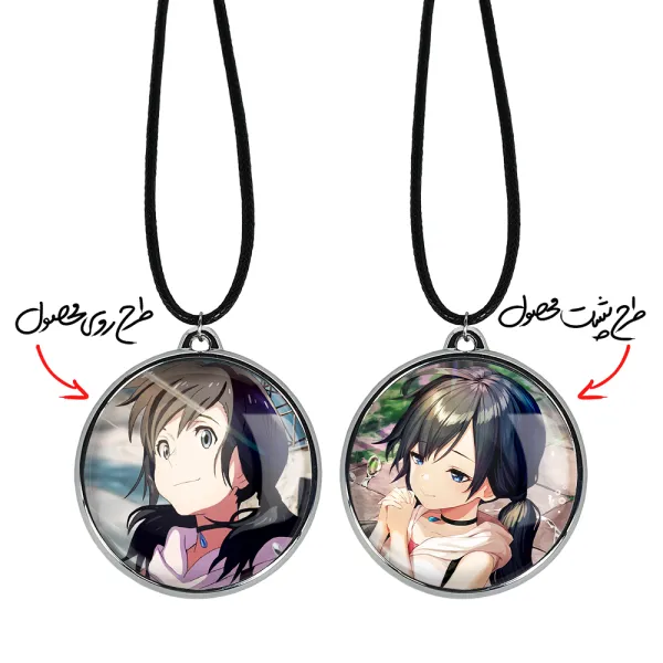 گردنبند خندالو طرح هینا انیمه تغییر آب و هوا با تو ، محصولی جدید و جذاب است که بصورت دو طرفه بوده، و در هر یک از طرفین گردنبند، طرح متفاوتی از یک موضوع چاپ شده است. دور پلاک گردنبند را، رینگی از جنس کروم نقره ای پوشانده که رنگ آن ثابت بوده و باعث هرچه زیباتر شدن گردنبند می شود. روکش براق روی گردنبند، مقاومت بالایی دارد و در مقابل عرق بدن با دوام بوده و با رطوبت های کم، به طرح آسیبی وارد نمی شود. چاپ گردنبند خندالو طرح هینا انیمه تغییر آب و هوا با تو بوسیله بهترین دستگاه های چاپ دیجیتال صورت می گیرد و طرح با شفافیتی مثال زدنی بر روی گردنبند نقش می بندد.