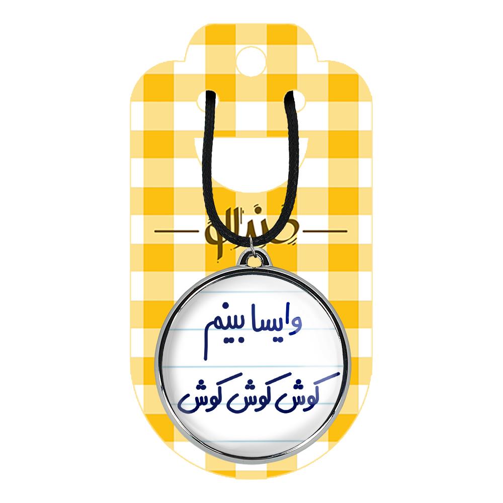 گردنبند خندالو طرح وایسا بینم کوش کوش کوش ، محصولی جدید و جذاب است که بصورت دو طرفه بوده، و در هر یک از طرفین گردنبند، طرح متفاوتی از یک موضوع چاپ شده است. دور پلاک گردنبند را، رینگی از جنس کروم نقره ای پوشانده که رنگ آن ثابت بوده و باعث هرچه زیباتر شدن گردنبند می شود. روکش براق روی گردنبند، مقاومت بالایی دارد و در مقابل عرق بدن با دوام بوده و با رطوبت های کم، به طرح آسیبی وارد نمی شود. چاپ گردنبند خندالو طرح وایسا بینم کوش کوش کوش بوسیله بهترین دستگاه های چاپ دیجیتال صورت می گیرد و طرح با شفافیتی مثال زدنی بر روی گردنبند نقش می بندد. جنس بند گردنبند ها نیز تولید شده از چرم صنعتی ست و با ضخامت و مقاومت بالایی که دارد آسیبی نمی بیند. زنجیر بوسیله قفل آبکاری شده به رنگ نقره ای، قابل باز و بسته شدن است که استفاده از آن را راحت تر می کند. همچنین بسته بندی مینیمال و منحصر به فرد خندالو، گردنبند ها را تبدیل به هدیه ای جذاب می کند که با قیمت مناسب و تنوع طرحی بسیار بالایی که از همه موضوعات دارد، میتواند برای هر سلیقه ای خوشحال کننده باشد.